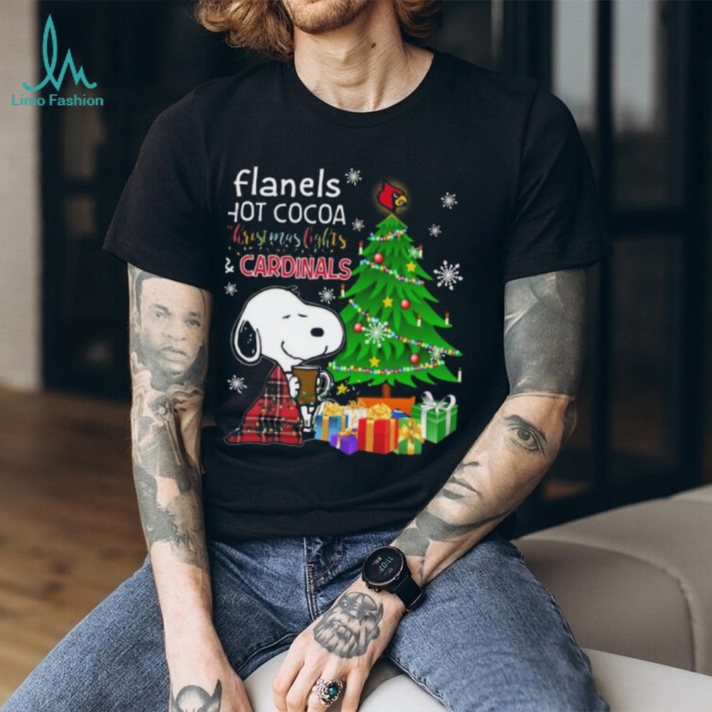 Best Official louisville Cardinals Snoopy Flannels Hot Cocoa Christmas Lights Tree T Shirt