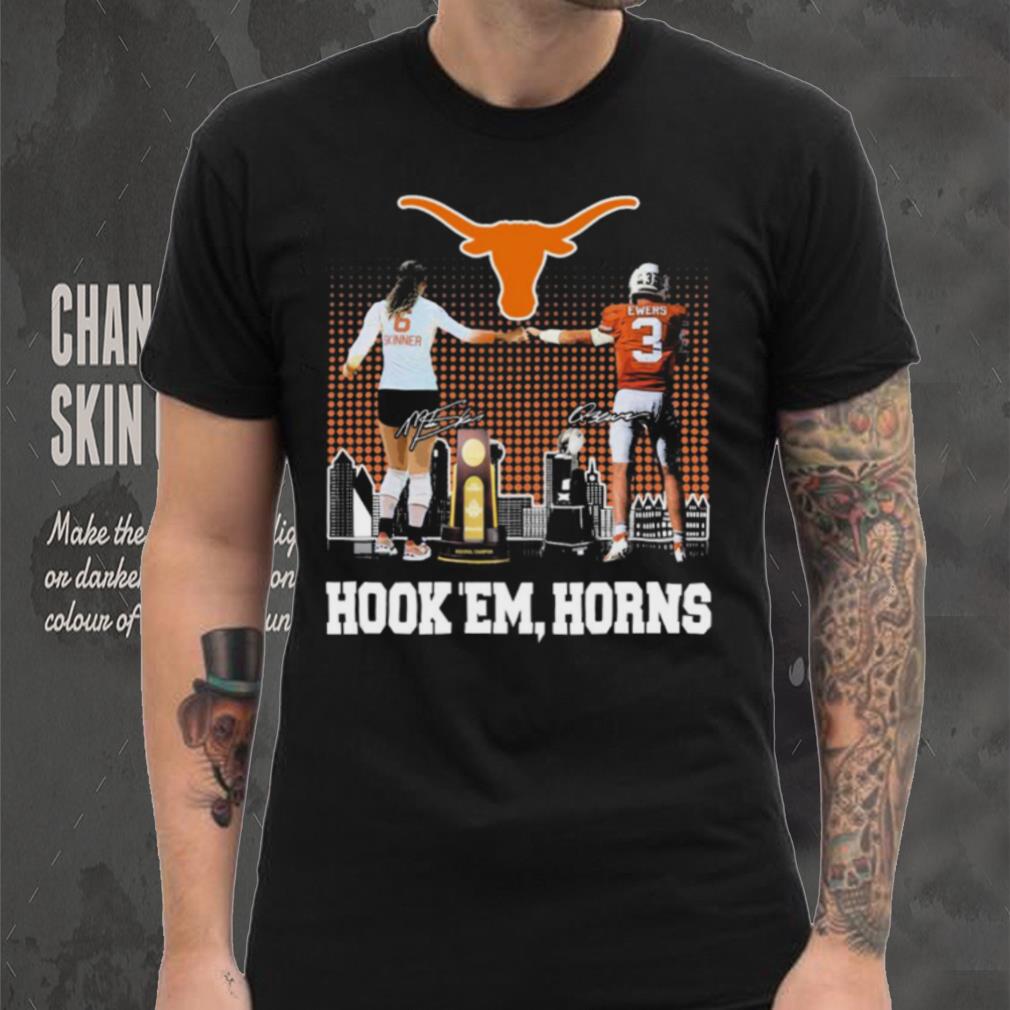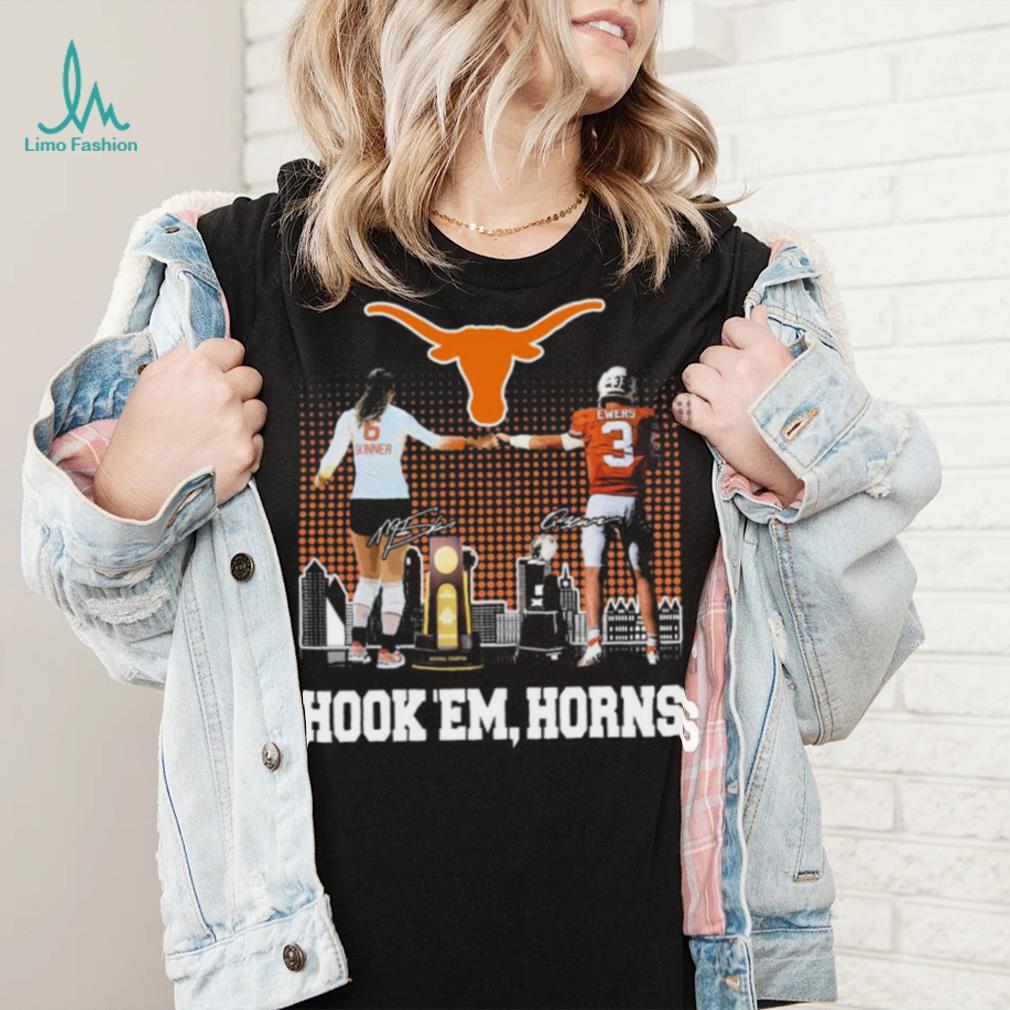 NFL players are unlikely to make the switch the other way, although New England Patriots special team player Nate Ebner has played in the Olympics for the USA Rugby Union Sevens team (7 aside rugby is a simpler and faster game compared to the full 15 man version of Union), Nate actually grew up playing rugby at age group level for the USA too, and only took up American Football later. The simple reason the switch is less likely to occur from pro to pro is that wages are far higher in the NFL. Rugby Union is the bigger and richer of the 2 codes, but has only been a Official Madisen Skinner And Quinn Ewers Texas Hook ‘Em, Horns Signatures Shirt sport since 1995. Rugby tends to have smaller teams in terms of catchment area. There are 33 teams in the top flights of British and French Rugby Union compared to 32 in the NFL.
