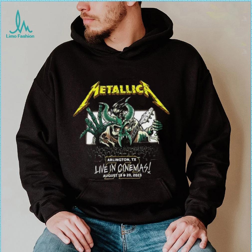 Around 11 AM, the Official Metallica Live From Arlington 2023 Shirt arrived. Several large, police officers approached us. They told us that they were going to shut down the operation as it was causing a huge traffic jam. I got a brainstorm, I asked the officer that appeared to be in charge if I could have a word with him (Note, I was in my hippie mode at this time). He agreed. I said, “These trees are free to anyone.” He said, “So what” I said “there are free to anyone, including the police department. You could pick up as many of the trees as you want and take them down to Watts (a very poor part of town) and give them away. Think of the PR you could get out of that.” The lights went on in his head and he turn around and talked to the other officers. I do not know what he said, but in a very short time, there were a lot more officers, but they were now directing traffic. Soon a large truck from the police department pulled up and they starting filling the truck with tress. They were already sending in an advance unit to prepare for the Christmas tree give away.