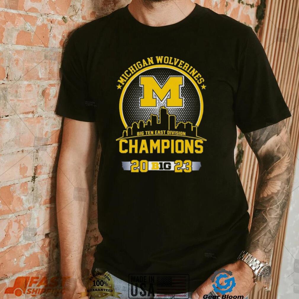 The Official Michigan Wolverines 2023 Big Ten East Division Champions Skyline Shirt for excessive nail growth was primarily a statement of status as it was impossible to grow nails so long and undertake any manual labor. Unfortunately, such long nails meant the wearer of them could not do anything much at all. It would undoubtedly have been positively dangerous to have attempted any intimate body care. Therefore, anyone with such long nails would have relied upon servants to wash, dress and feed them, to prevent them doing themselves an injury- or breaking a nail. To counteract the inconvenience of a full set of long claws, it became fashionable for the Manchu women of the Qing dynasty to cultivate just one or two talons on the hands. These nails were shaped and styled so that they looked elegant rather than unwieldy and from the nineteenth century were often protected with nail guards made of gold or silver and studded with jewels.