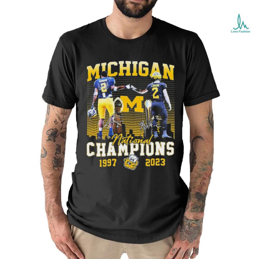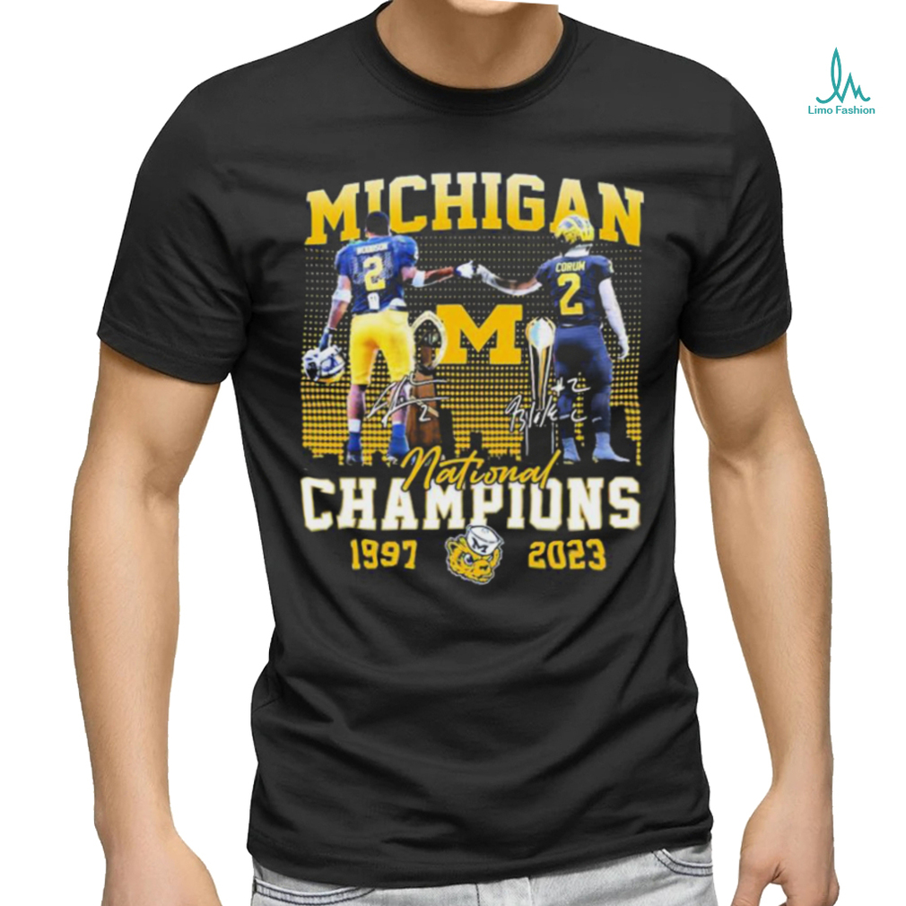 Official michigan Wolverines Charles Woodson And Blake Corum National Champions 1997, 2023 Signature Shirt, Hoodie, Sweater, Vneck, Unisex and T-shirt