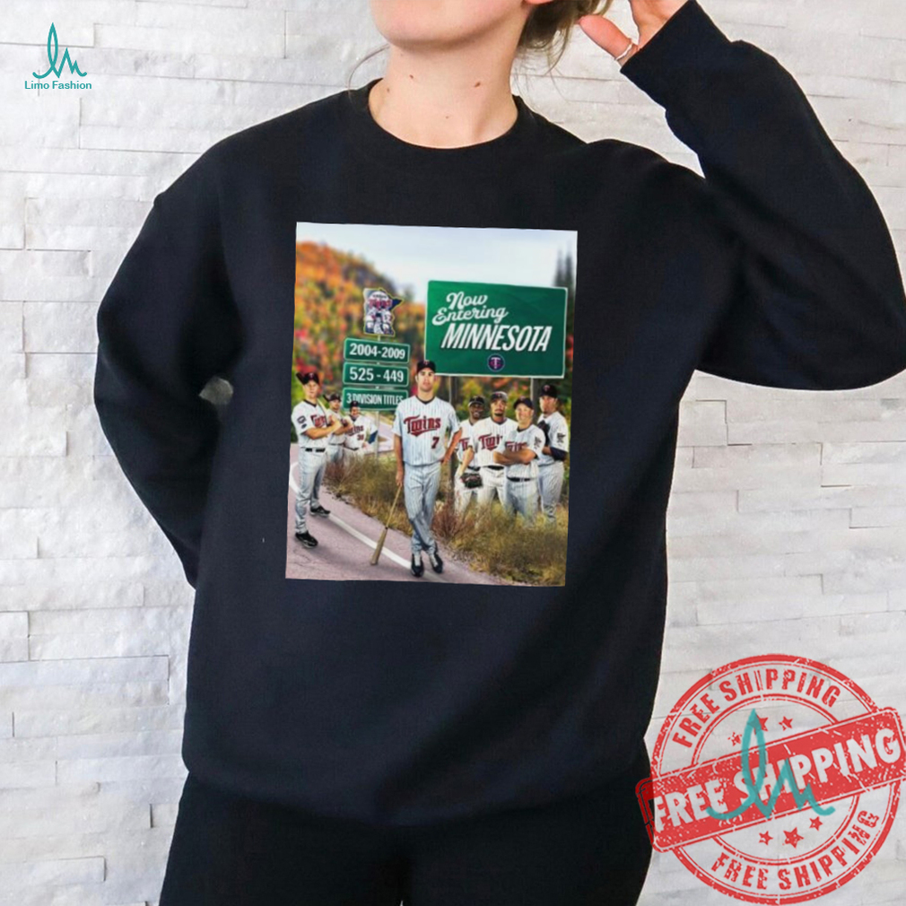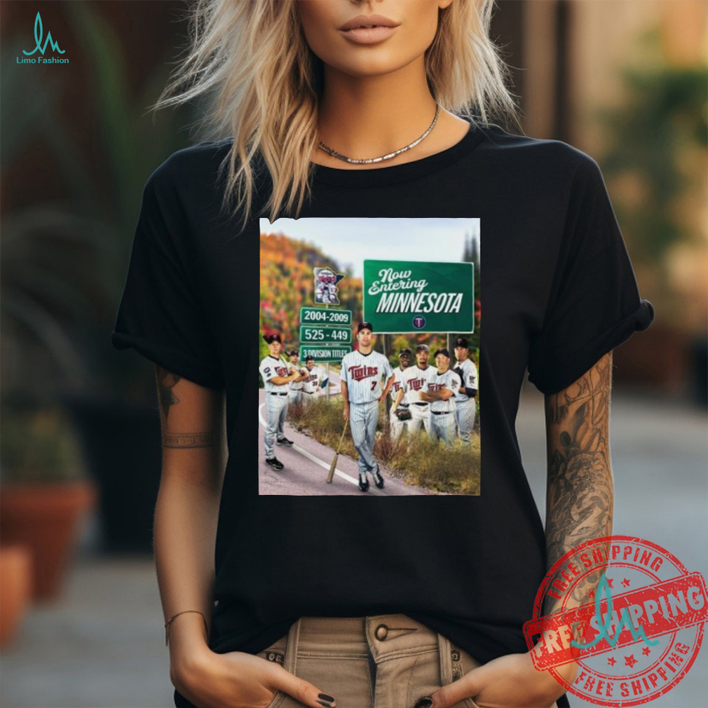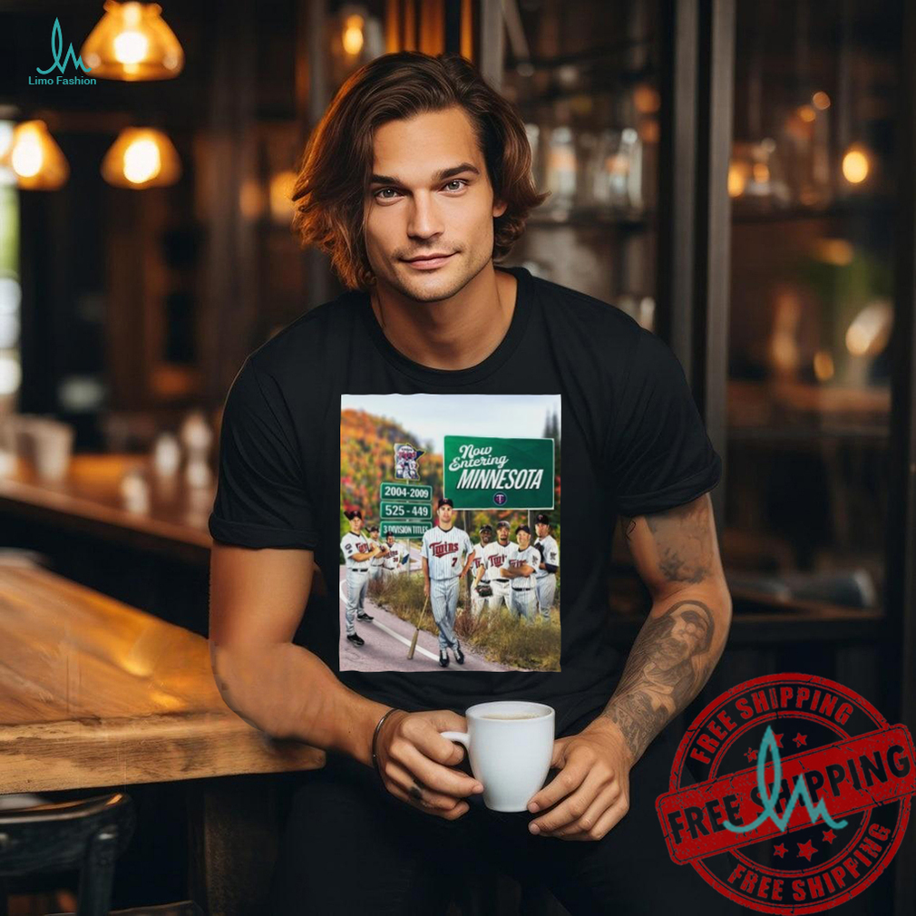 ()Official Minnesota Twins Now Entering 2004 2009 525 449 3 Division Titles T Shirt