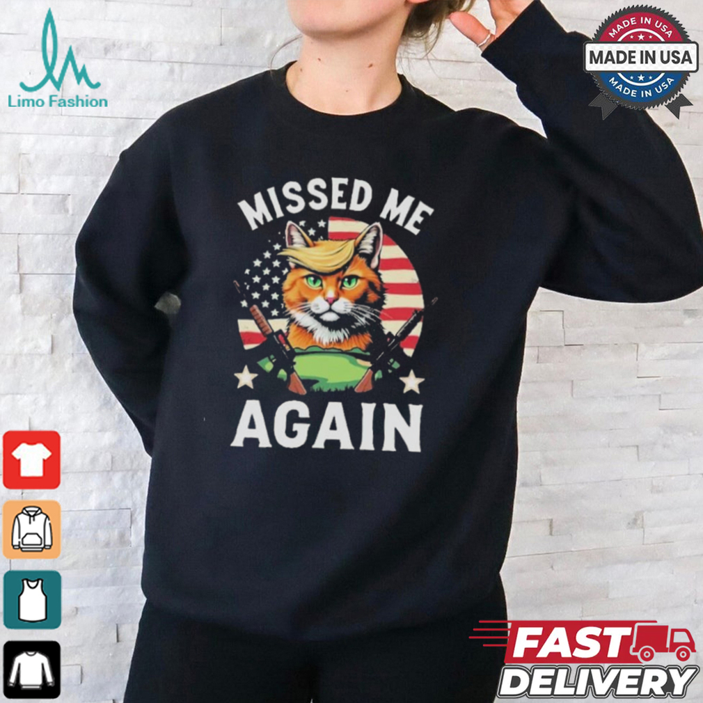 NASA stumbling across Official Missed Me Again Second Trump Cat Golf Shirt of intelligent extraterrestrial life would be pretty impressive, considering that it’s not their mission. They aren’t SETI, listening for artificial signals from distant stars. NASA’s space telescopes aren’t looking for megastructures or other evidence of intelligent, spacefaring life. For the most part, NASA’s mission of space exploration focuses its efforts on the Sol System for fairly obvious reasons which would pretty much preclude NASA from finding evidence of intelligent life. Basically, it’s not their job.
