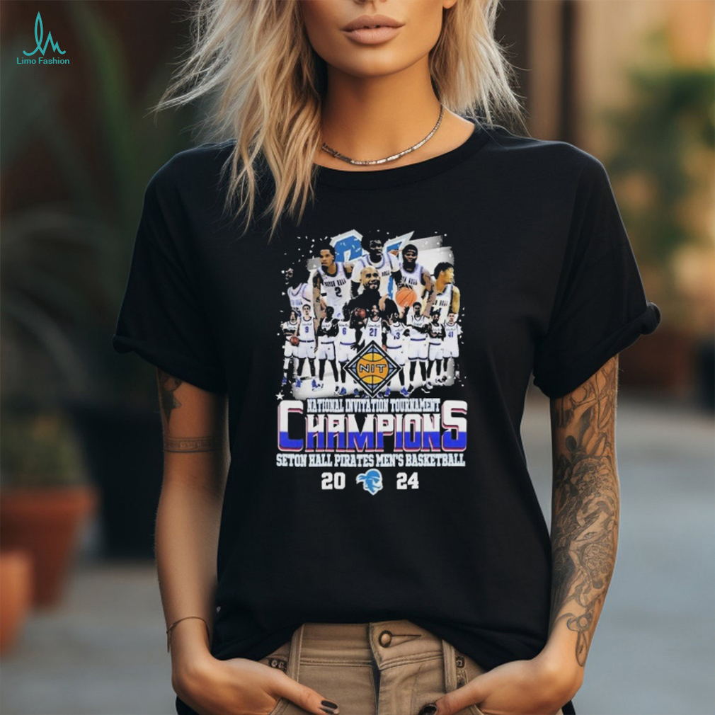 But what I do remember is waking up suddenly and Official National Invitation Tournament Champions Seton Hall Pirates Men’s Basketball 2024 Shirt like I was punched in the stomach by a small child. And right in my face meowing frantically was my little buddy. When I caught my breath and the pain in my throat and chest went away my wife proceeded to tell me a story of how Tealc kept coming in jumping on her lap and then darting back into the bedroom several times. Each time she heard rustling and thought he was playing with his sister.