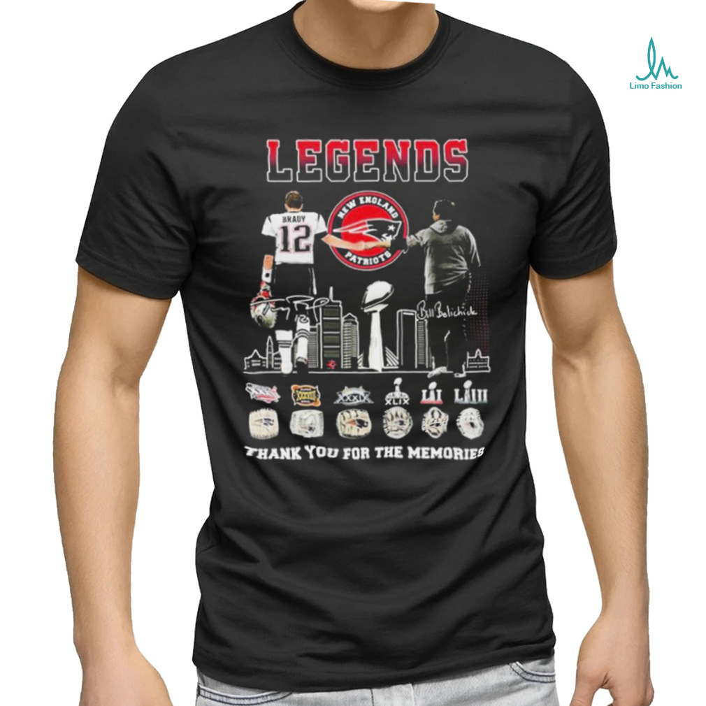 Official New England Patriots Legends Tom Brady And Bill Belichick Thank You For The Memories Signatures Shirt. Categories of this T-shirt is teejeep, Official New England Patriots Legends Tom Brady And Bill Belichick Thank You For The Memories Signatures Shirt from Dadyshirt ✓ Unique designs ✓ Large assortment ✓ Comfortable ✓ High-quality ✓ Easy to care for ✓ Available in a range of colours and styles for men, women ✓ Shop now ✓