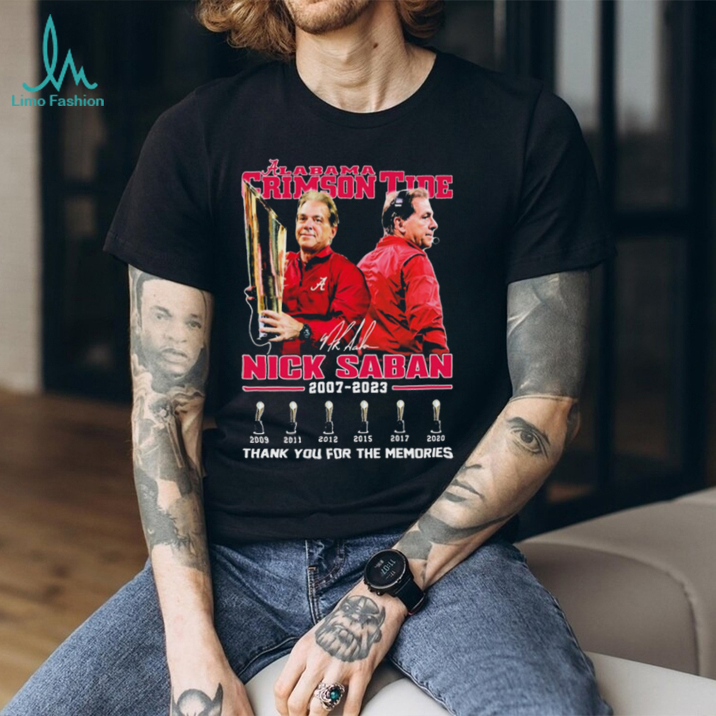 Official nick Saban Thanks Coach Of Alabama Crimson Tide 2007 2023 Signature Shirt. Categories of this T-shirt is teejeep, Official nick Saban Thanks Coach Of Alabama Crimson Tide 2007 2023 Signature Shirt from Dadyshirt ✓ Unique designs ✓ Large assortment ✓ Comfortable ✓ High-quality ✓ Easy to care for ✓ Available in a range of colours and styles for men, women ✓ Shop now ✓