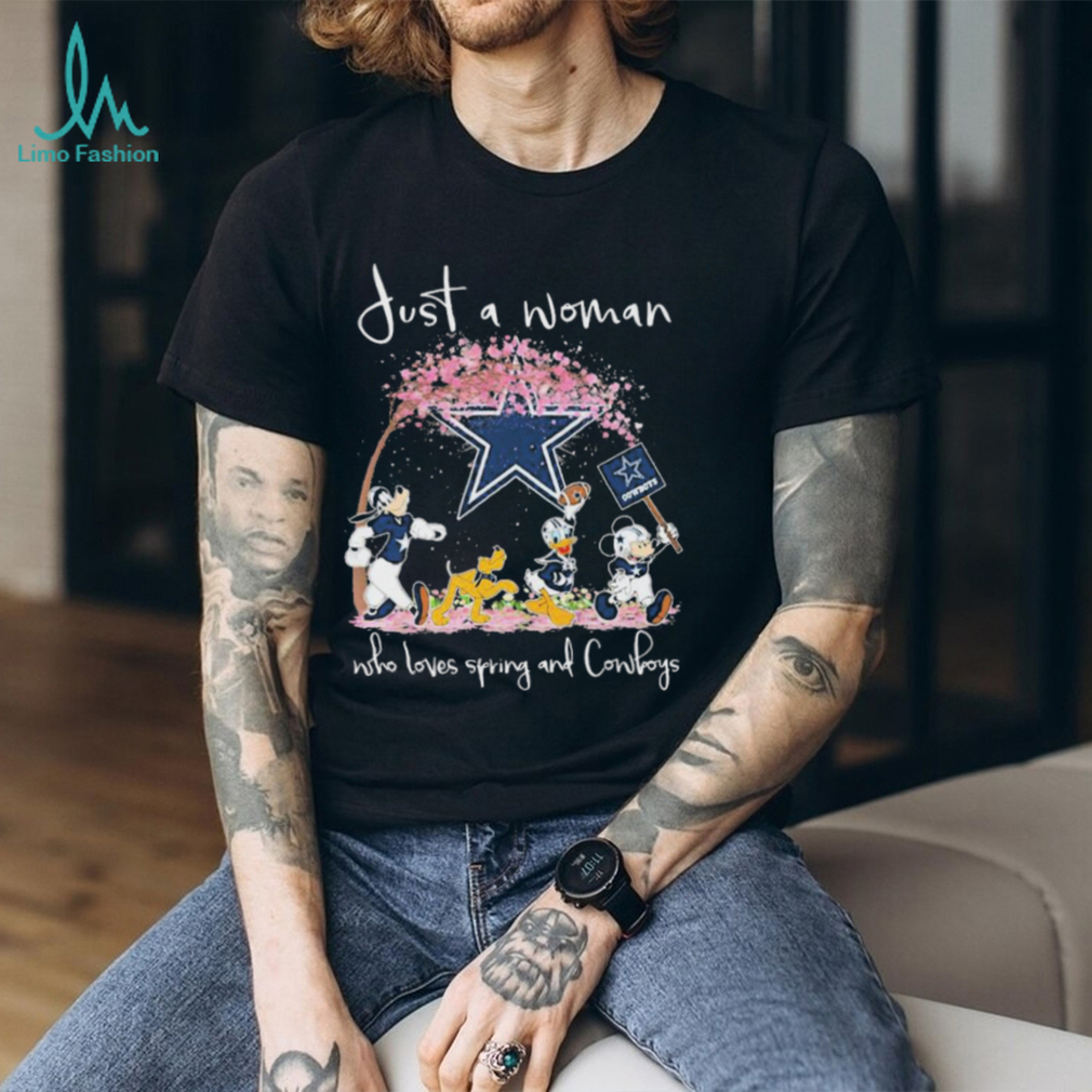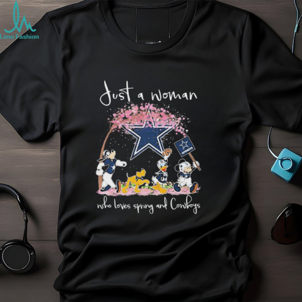 Geography. Pick the local team. If you are in say Miami, congratulations you can be a Dolphins fan and if you want to support teams across several levels, then the Dolphins for the NFL, Miami Hurricane among the power college programs and Florida International Panthers in the so-called Group of 5. If you are in an area not near an NFL team pick a Official Official Official Disney Characters Just A Woman Who Loves Spring And Dallas Cowboys Shirt college and could even find enjoyment following a small regional team that plays in Division II or III or Division I FCS. Aesthetic reasons. You like the dark blue and orange combo of the Denver Broncos then that can be your team (also opens up the Boise State Broncos in college football). I’m a Denver Broncos fan and Kansas City is a Official Official Official Disney Characters Just A Woman Who Loves Spring And Dallas Cowboys Shirt rival but I have to admit I like their home uniform. Like red and black? That gives you the Atlanta Falcons in the NFL, Texas Tech and Arkansas State and Cincinnati just off the top of my head. I don’t like the University of Texas but I happen to think their road uniform is one of the best in college football.