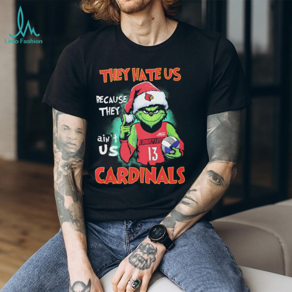As someone who usually doesn’t get gifts and has a hard time getting and Official Official Santa Grinch Christmas Volleyball They Hate Us Because They Ain’t Us Louisville Cardinals Shirt receiving them and finding what I want, it helps when there’s is secret santa stuff. So I helped out by participating and got picked to give a gift to this nice girl I knew. On the day of gift giving, as it was a surprise, I tapped her on the shoulder as she turned around, putting the gift in her hand in a smooth motion. It was one of the things on her wish list. Stunned in a good way, she said “thank you!” After saying my name. A minute later, a person I didn’t know as well, gave me a gift. I’ve never really celebrated it outside my family, and didn’t think I would get one. It was neat, and a very nice surprise, as we didn’t associate much with each other. I thanked her, and then again more than twenty minutes later as class ended. But the kicker: it was lunch time, and I was going to the bathroom, as per usual. Then this other person I know, a lot better, and am better pals with but don’t always get to hang out, but find much in common, called me over. I waited patiently to see what it was all about. We never really hung out at lunch, and last time she had asked me a question, so I had answered her. Our relationship wasn’t bad.