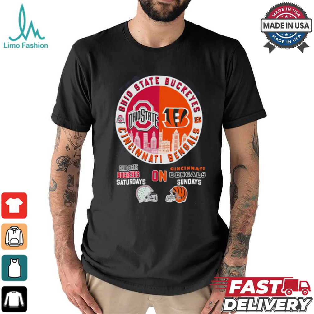 Official Ohio State Buckeyes Saturdays On Cincinnati Bengals Sundays Shirt. Categories of this T-shirt is teejeep, Official Ohio State Buckeyes Saturdays On Cincinnati Bengals Sundays Shirt from Dadyshirt ✓ Unique designs ✓ Large assortment ✓ Comfortable ✓ High-quality ✓ Easy to care for ✓ Available in a range of colours and styles for men, women ✓ Shop now ✓