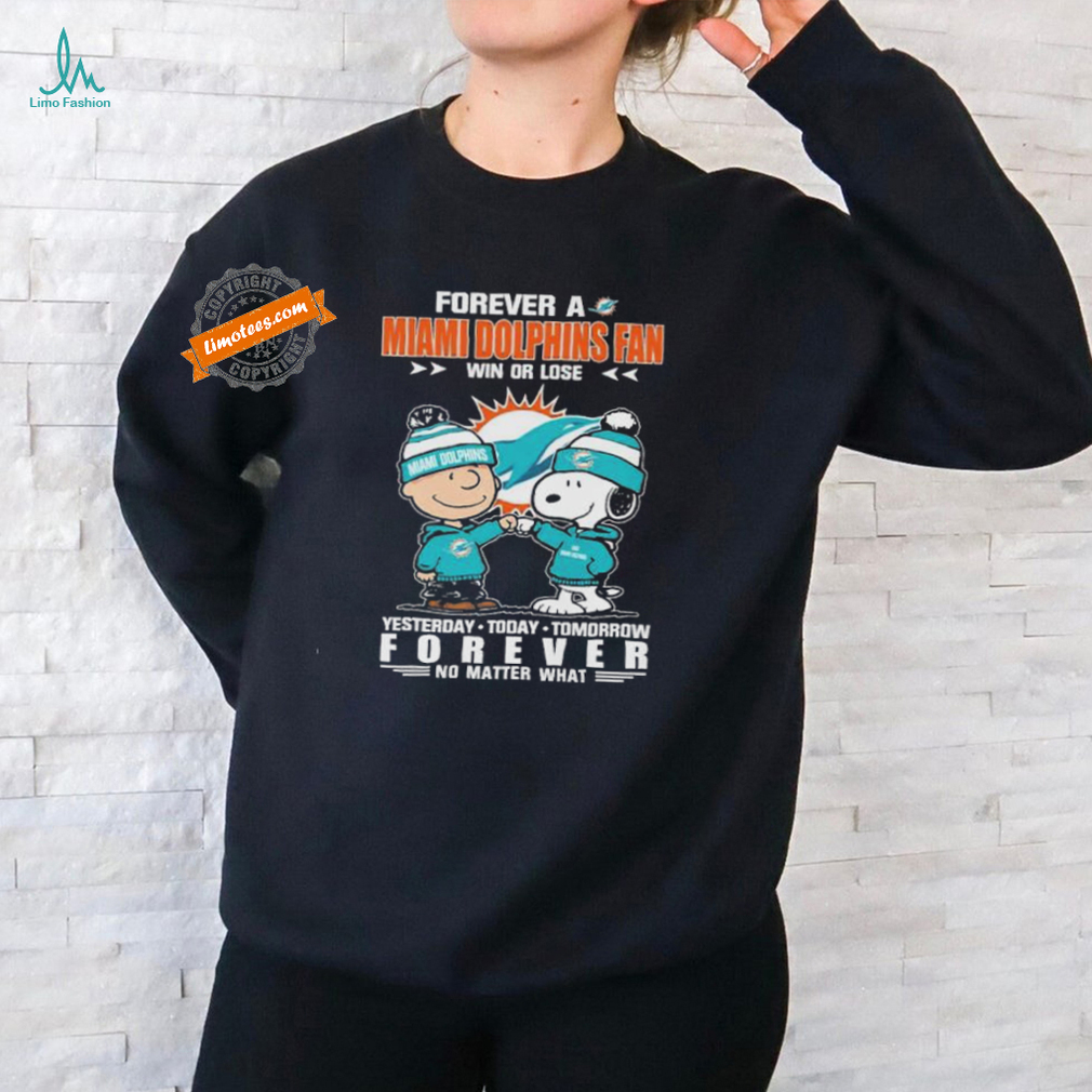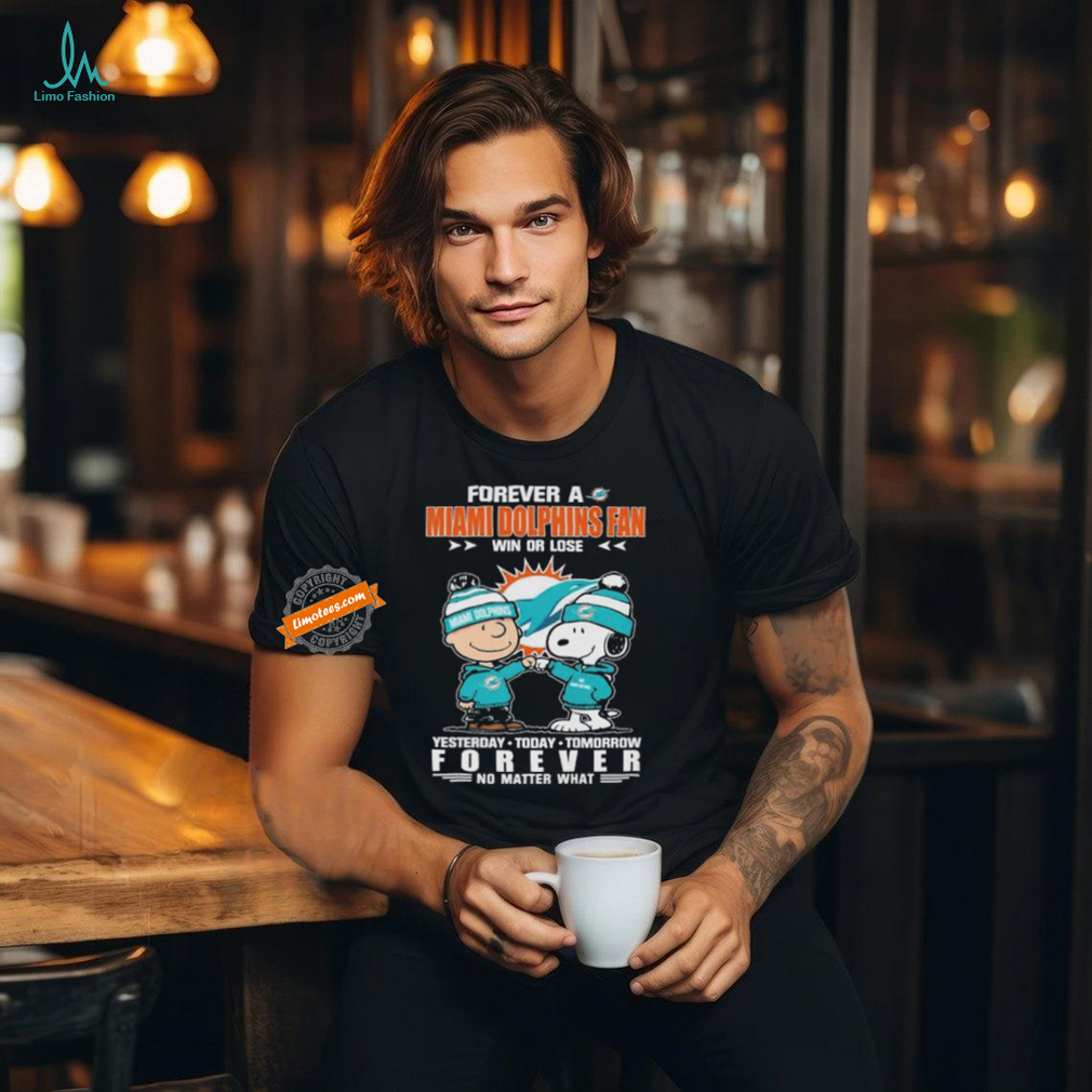 Official Peanuts Snoopy And Charlie Browns Forever A Miami Dolphins Fan Win Or Lose Yesterday Today Tomorrow Forever No Matter What Shirt