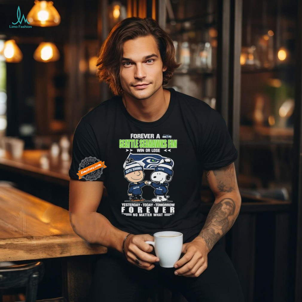 Official Peanuts Snoopy And Charlie Browns Forever A Seattle Seahawks Fan Win Or Lose Yesterday Today Tomorrow Forever No Matter What Shirt