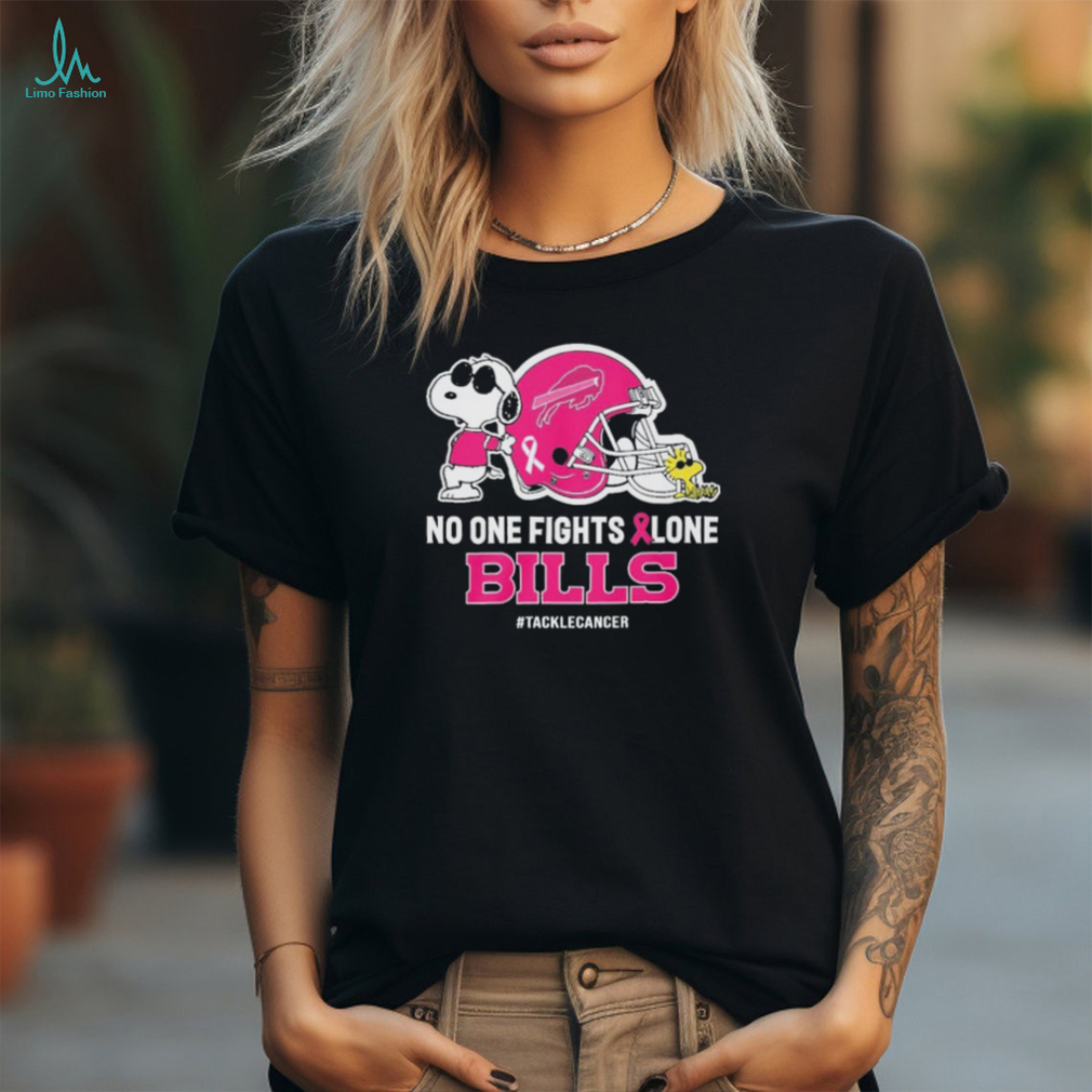 ()Official Peanuts Snoopy And Woodstock No One Fights Alone Buffalo Bills #Tackecancer Shirt