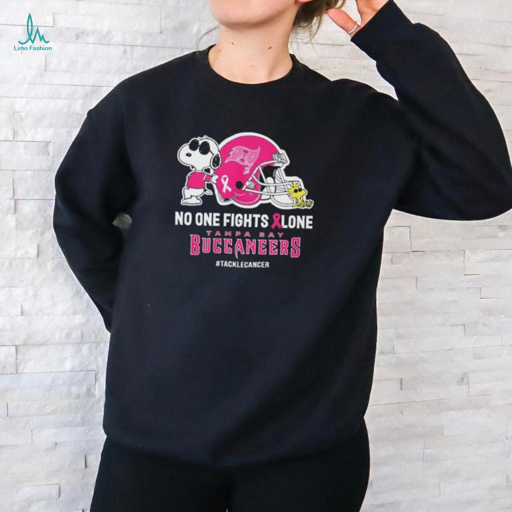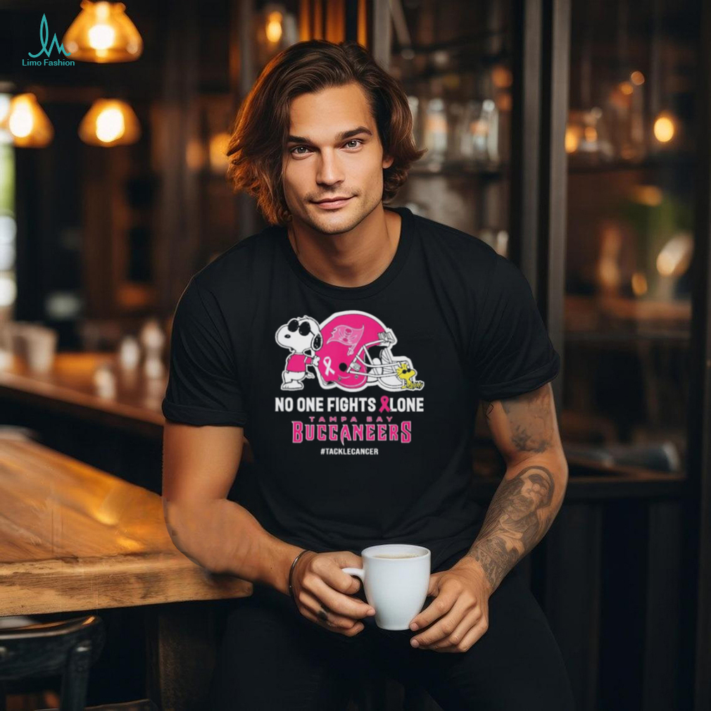 ()Official Peanuts Snoopy And Woodstock No One Fights Alone Tampa Bay Buccaneers #Tackecancer Shirt