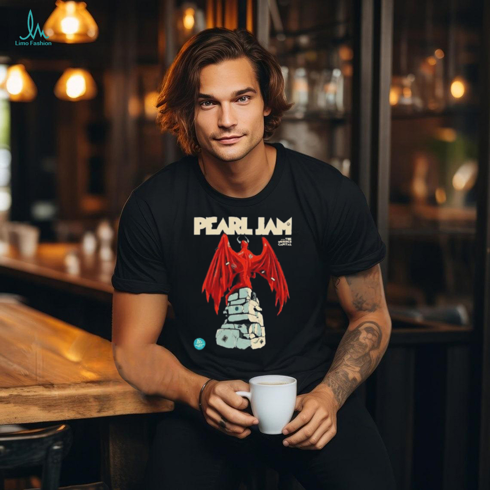 One morning I was in the kitchen, Official Pearl Jam With The Murder Capital Berlin,Germany Waldbühne July 2 2024 Tour shirt ready to leave for work, when I heard a clattering noise in the front hall. I ignored it, but it got louder. I went to investigate and saw my cat Little Bit had dragged my mp3 player and earbuds to the stairs and was pushing them down. She pushed them the rest of the way down so they were at my feet and then she sat and looked up at me. I normally take them with me every morning, but had forgotten them on my dresser that day.