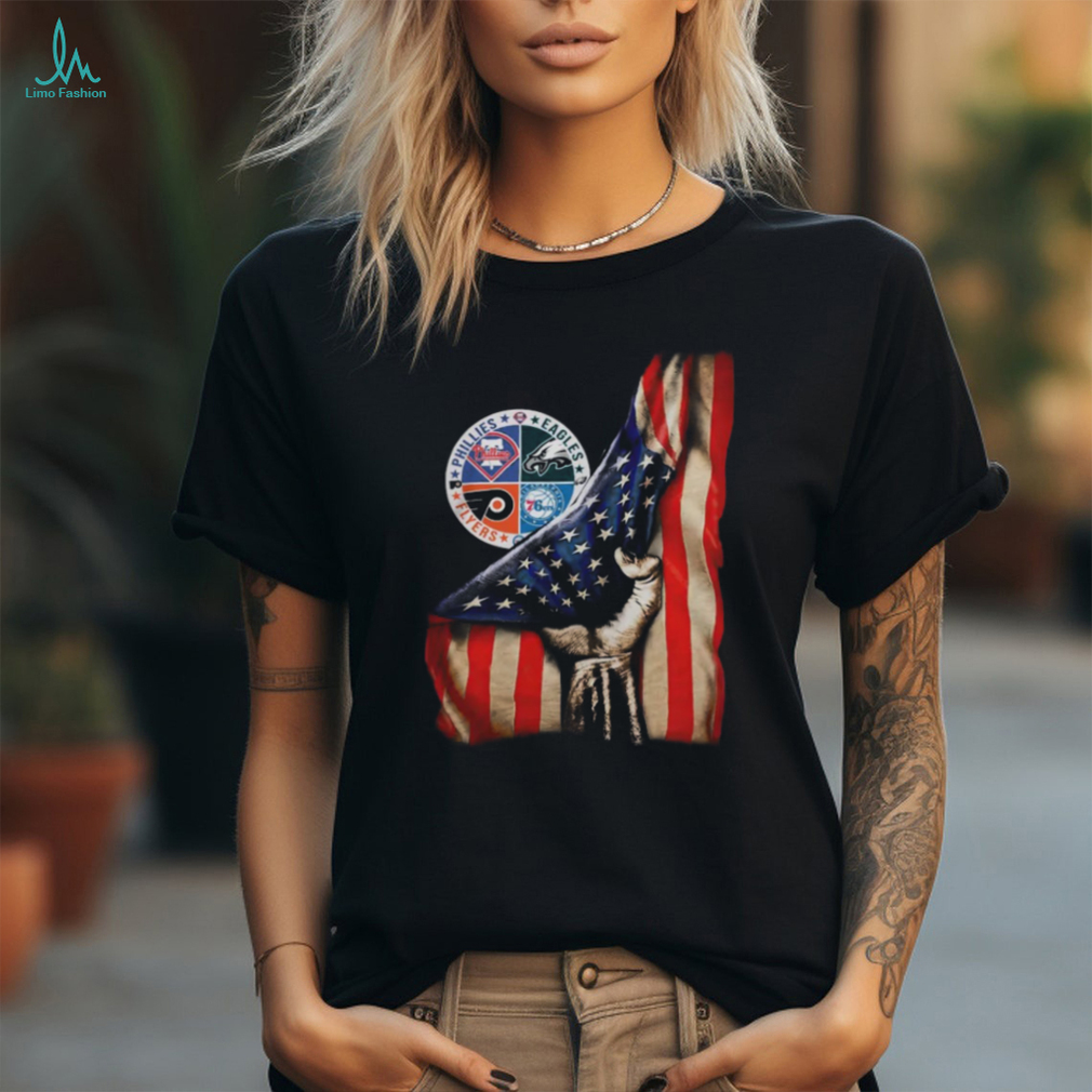 As much as a month later, she Official Philadelphia Sports Teams Hand Pulling American Flag T Shirt jump up on the table and point to the exact spot behind the solid wooden panel where I had placed the tuna. We learned not to use the word “tuna” in conversation, lest she beg and whine inconsolably (until we gave her tuna). She also learned that tuna was spelled t-u-n-a so we could not spell tuna in front of her. When she died, I buried her with a can of tuna.