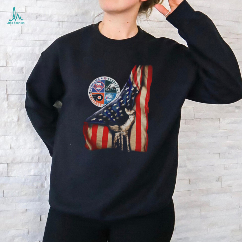 Official Philadelphia Sports Teams Hand Pulling American Flag T Shirt