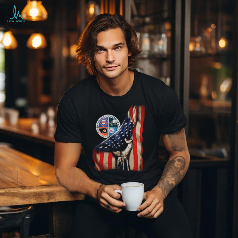 ()Official Philadelphia Sports Teams Hand Pulling American Flag T Shirt