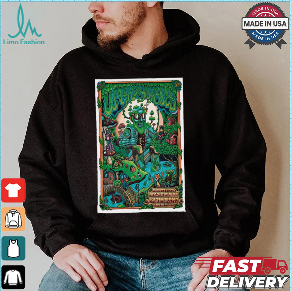 The truckers were speculator and had invested in the Christmas tree to sell to Christmas tree lots so they would have fresh trees. In the past years this had worked out very well, but because of all the Official Poster Umphrey’s Mcgee Aug 29 2024 Pier Six Pavilion In Baltimore MD t shirt , no one wanted the tree. They were going to have to pay to bring them to the dump, so they decide to give them away. I asked the cop and the owner if I could find a place for them to move to, would let them go, it is Christmas. They agreed. I phoned the radio station (a long time before cell phones, this was done on a pay phone) I told them what the problem, the trees were free, but they needed some place to put the trees.