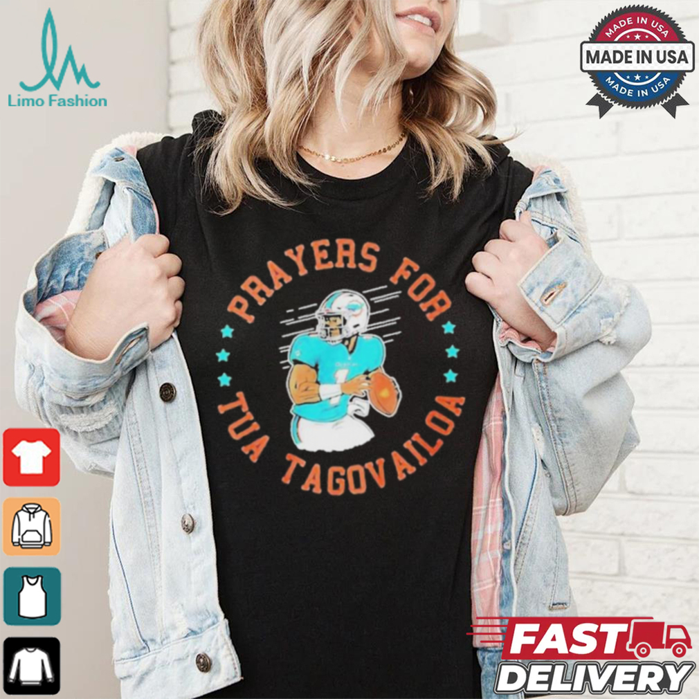 At this point Mephistopheles returns and Beethoven informs the Official Prayers For Tua Tagovailoa T Shirt that he will not allow his music to be destroyed. Desperate to receive the Tenth Symphony, Mephistopheles makes another deal: if Beethoven will give over only the Tenth Symphony, then Mephistopheles will not take the composer’s soul. After an appearance by Mozart’s ghost, Beethoven refuses this offer as well. As a final tactic, Mephistopheles points out the window to a young orphan and describes the tortures that she will receive if Beethoven refuses to hand over his music. Heartbroken, Beethoven agrees to hand over his Tenth Symphony. After Twist’s prompting, a contract is drawn up by Fate stating the following.
