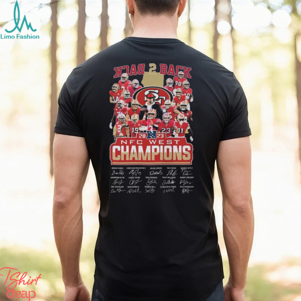 Official San Francisco 49ers Back 2 Back 2023 NFC West Champions Signatures Shirt