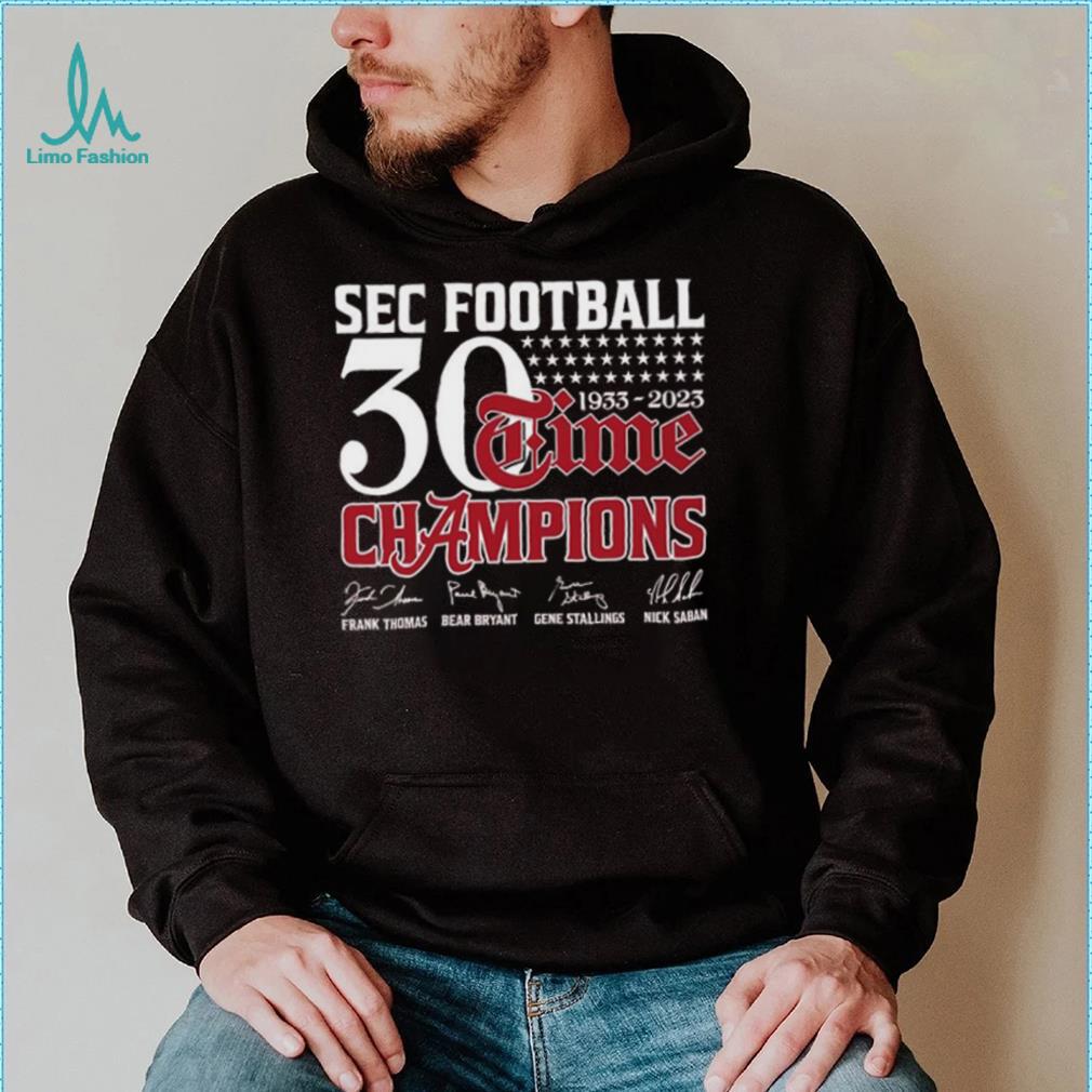 Official SEC Football 30 Time 1933 2023 Alabama Crimson Tide Champions Signatures Shirt