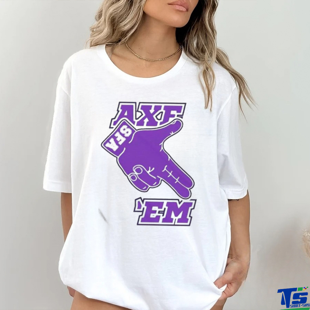 Official SFA Lumberjack Football Raise The Axe Axe Em Logo T Shirt, Hoodie, Sweater, Vneck, Unisex and T-shirt