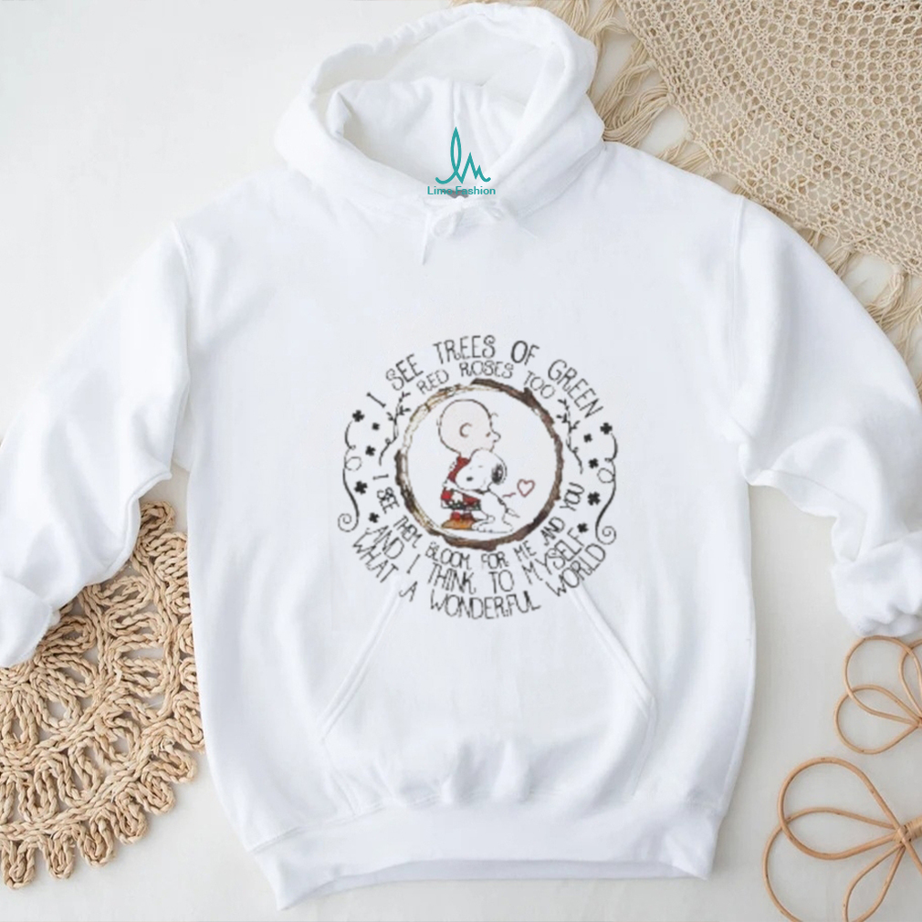 Official Snoopy and Charlie Brown I see trees of green red roses too shirt