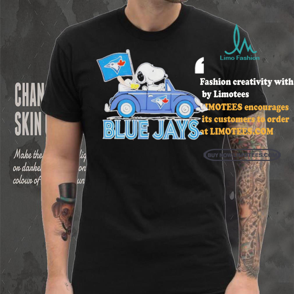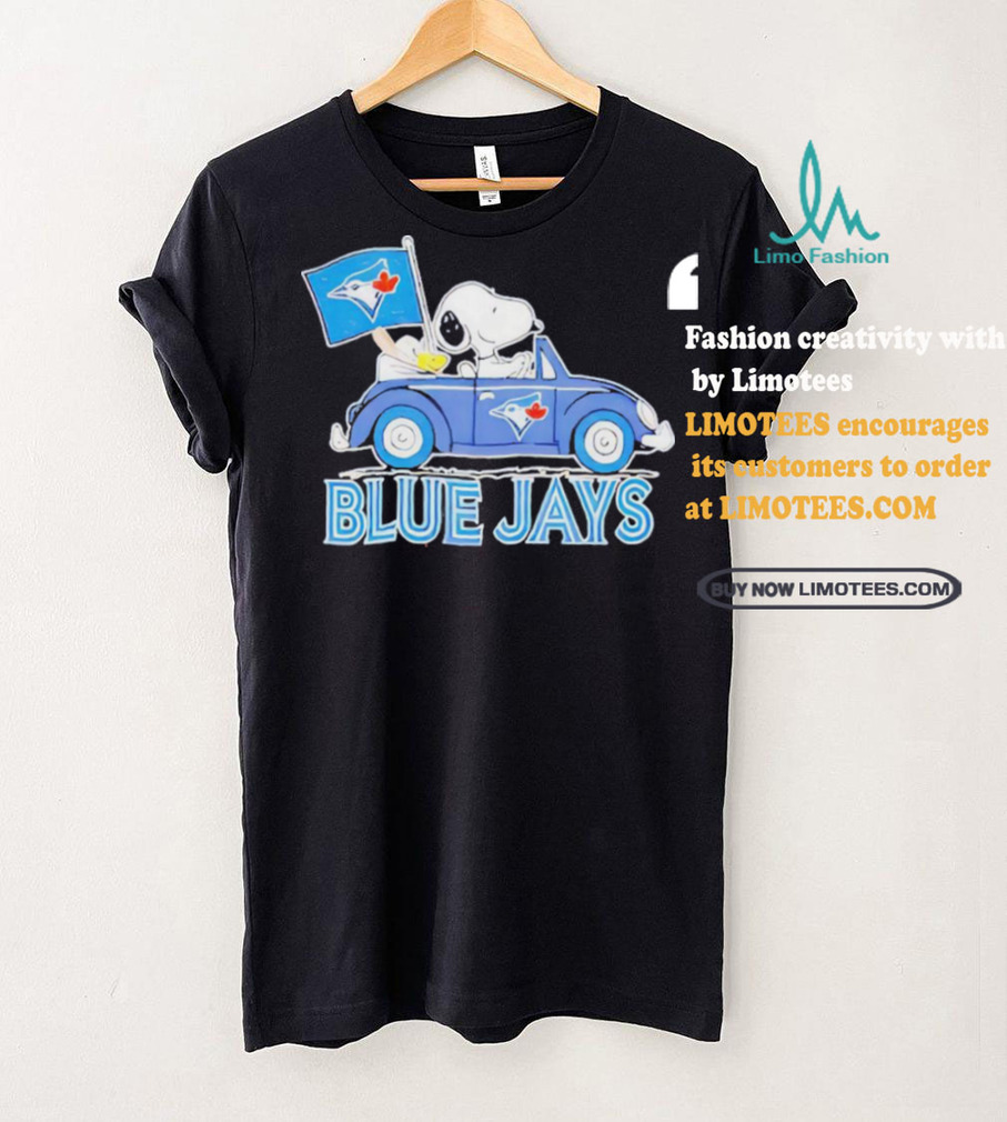 Official Snoopy Drives Car With Toronto Blue Jays Flag T Shirt