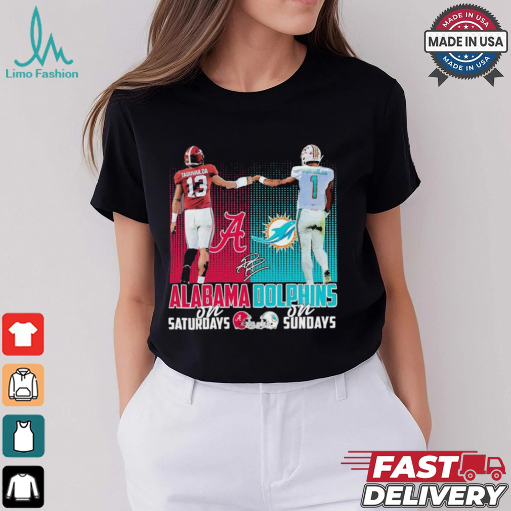 Official Tagovailoa Alabama Crimson Tide On Saturdays and Tagovailoa Miami Dolphins On Sundays 2024 Signature Shirt hoodie, tank top, sweater and long sleeve t-shirt