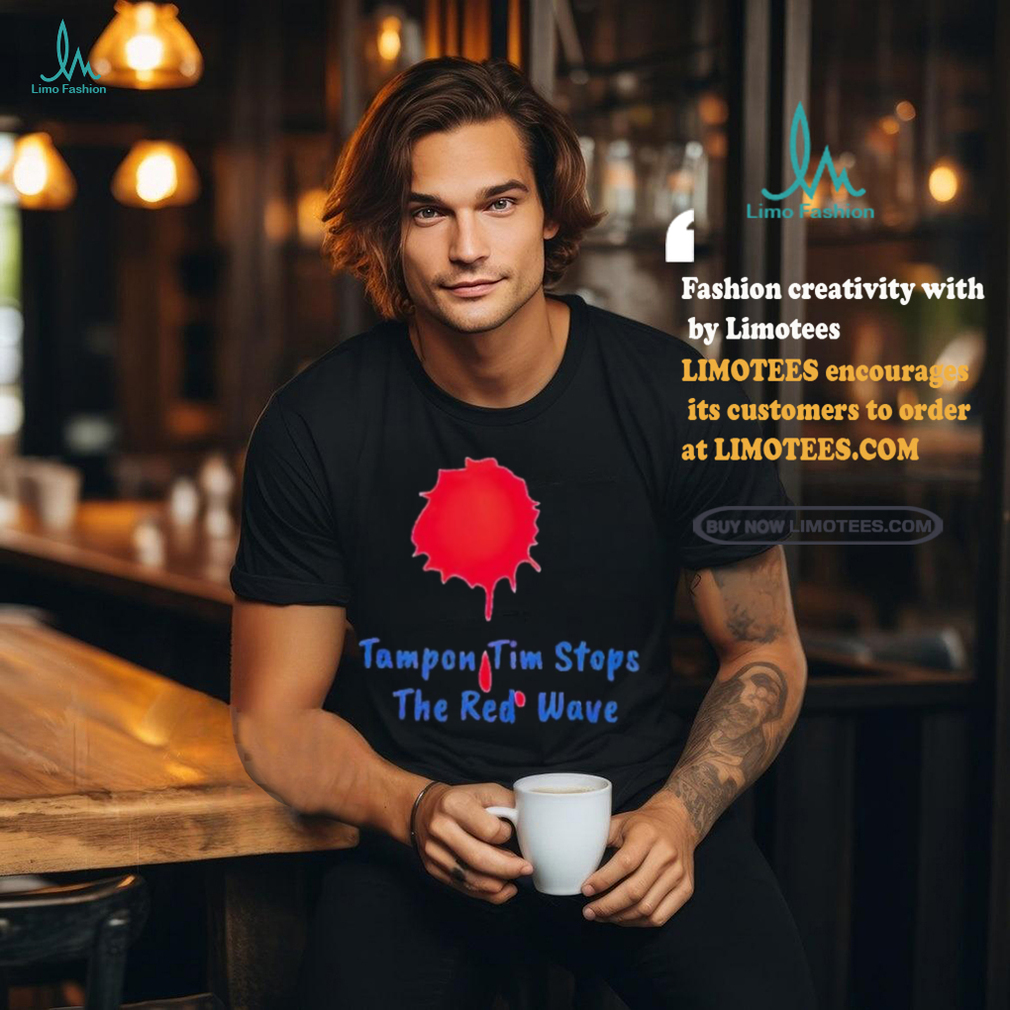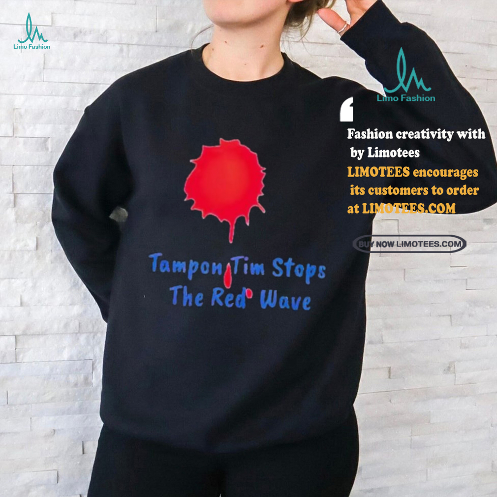 Between seeing Official Tampon Tim stops the red wave 2024 Shirt , I overheard one of the nurses talking about how her husband had been made redundant and she was working triple shifts to try and pay the expenses until he managed to find another job, and then to my surprise she said that someone had seen her looking sad that morning so they offered her their piece of chocolate cake, and they chatted about her problems and she was feeling much more positive after talking about it with someone who was willing to listen. I don’t know which one of my classmates it was, but what a lovely way to spread and share happiness.