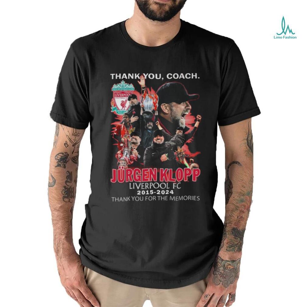 Official Thank You, Coach Jurgen Klopp Liverpool FC 2015 2024 Thank You For The Memories Signature shirt. Categories of this T-shirt is teejeep, Official Thank You, Coach Jurgen Klopp Liverpool FC 2015 2024 Thank You For The Memories Signature shirt from Dadyshirt ✓ Unique designs ✓ Large assortment ✓ Comfortable ✓ High-quality ✓ Easy to care for ✓ Available in a range of colours and styles for men, women ✓ Shop now ✓