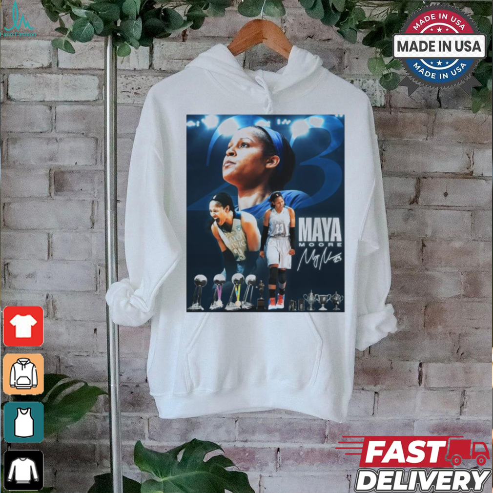 To understand why, you need to Official Thank You Maya Moore Minnesota Lynx FO23VER WNBA Signature poster t shirt NASA’s history. During the Apollo days, James Webb, NASA administrator, was focused on one thing: Apollo. Post-Apollo planning was entirely nonexistent because he didn’t want to allow dreaming about the future to negatively impact the incredibly difficult mission they were already focused on. That’s not to say that he expected us to go to the moon and stop, however. He fully expected to continue towards a goal of “preeminence in space.”