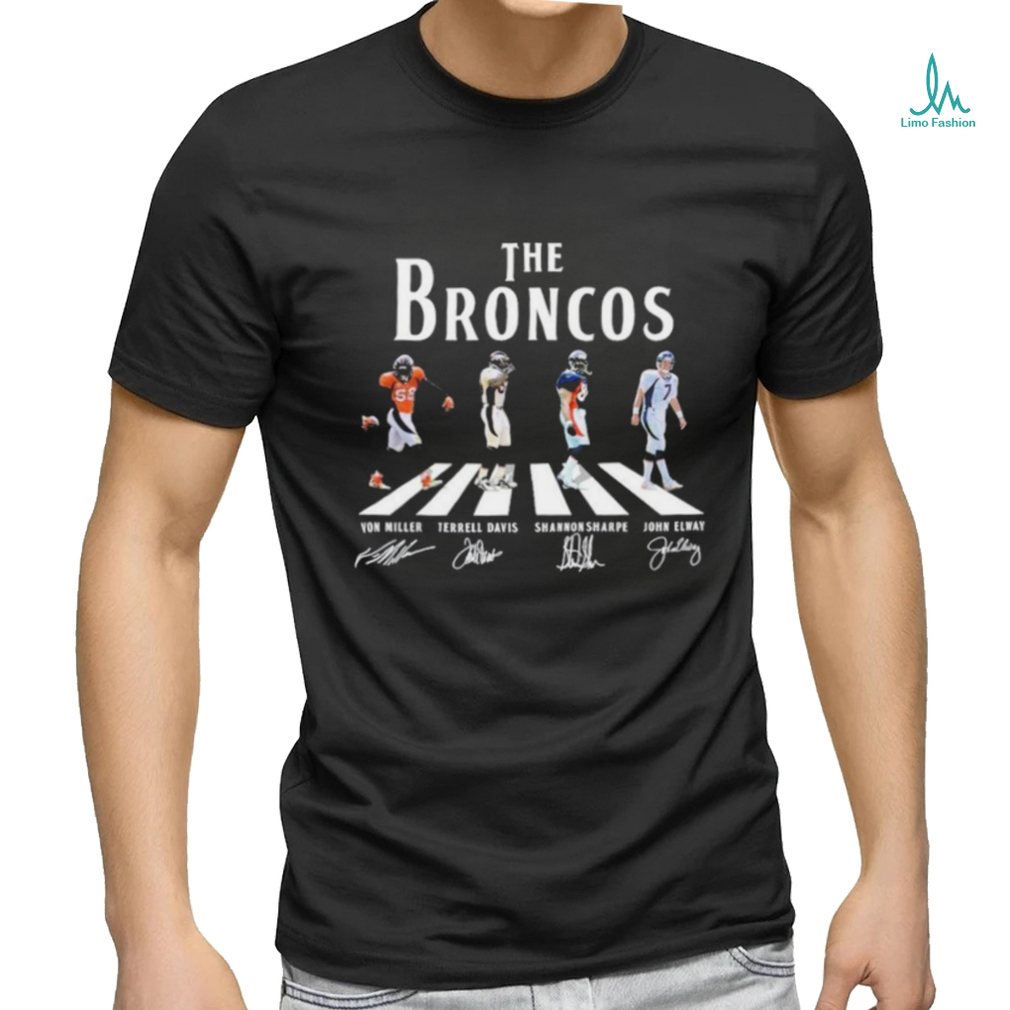 Official The Broncos Abbey Road Von Miller Terrell Davis Shannon Sharpe And John Elway Signatures Shirt, Hoodie, Sweater, Vneck, Unisex and T-shirt
