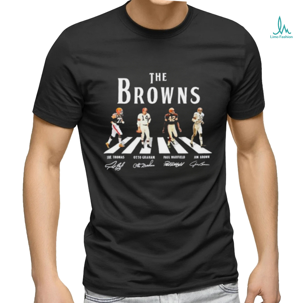 Official The Browns Abbey Road Joe Thomas Otto Graham Paul Warfield And Jim Brown Signatures Shirt