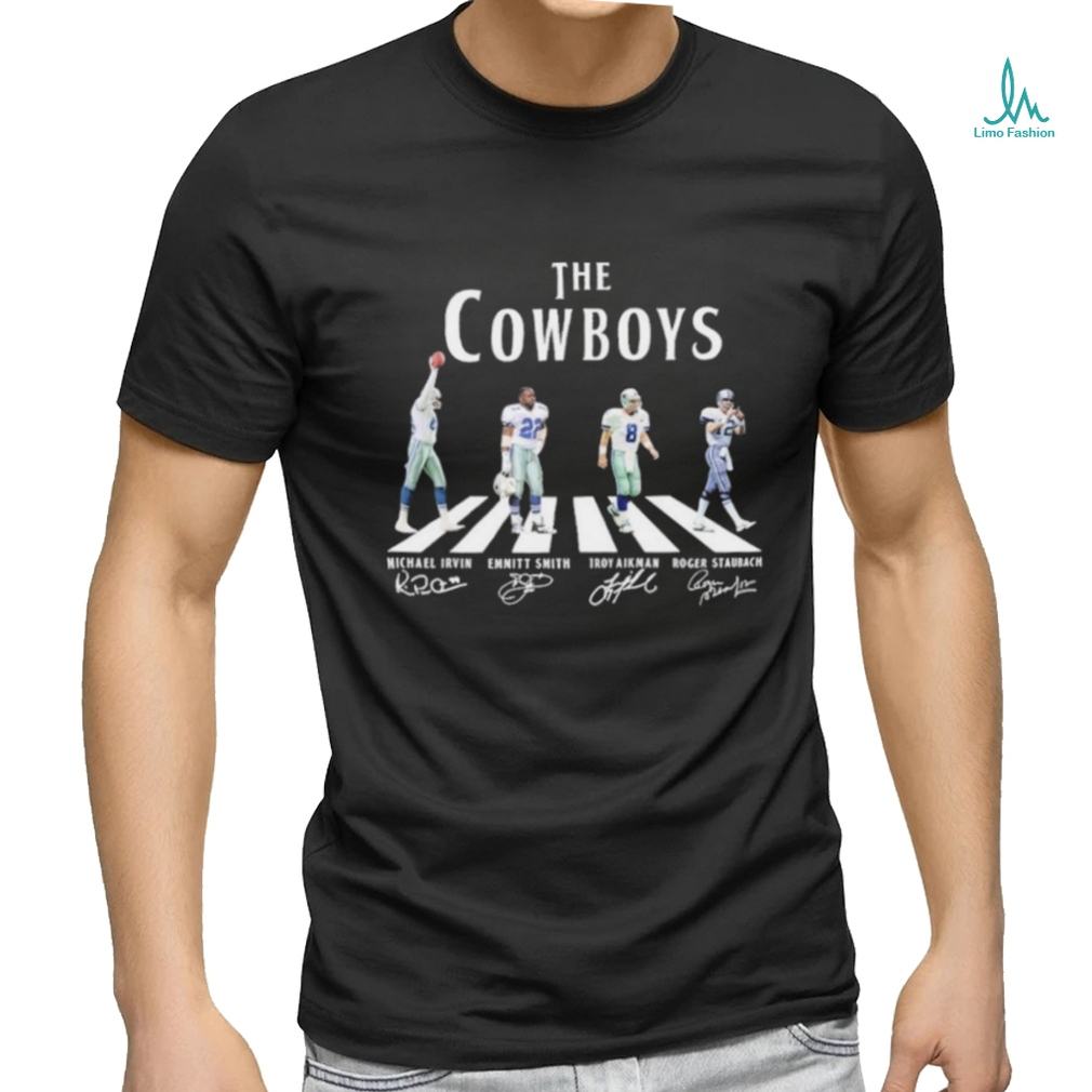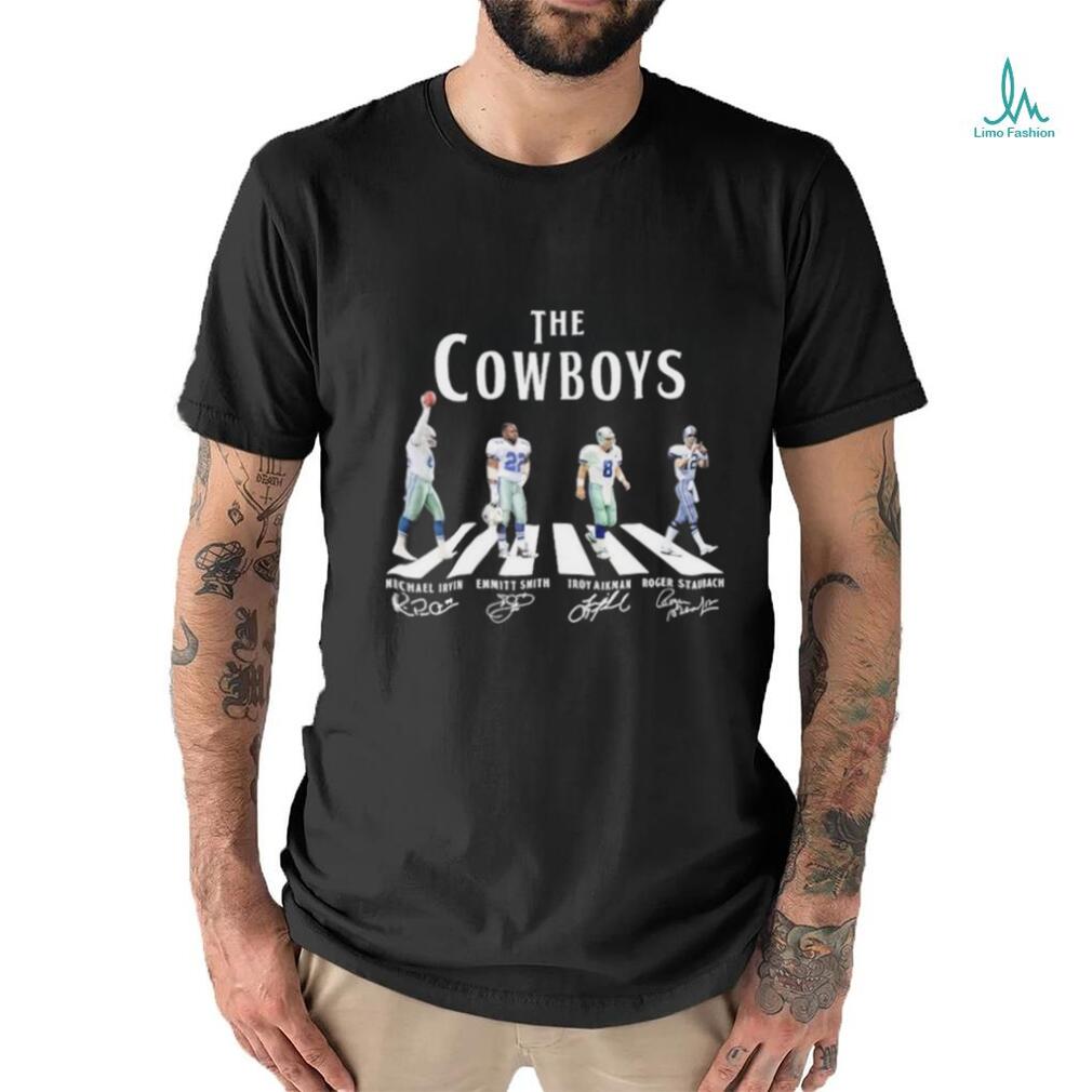 ()Official The Cowboys Abbey Road Michael Irvin Emmitt Smith Troy Aikman And Roger Staubach Signatures Shirt, Hoodie, Sweater, Vneck, Unisex and T-shirt
