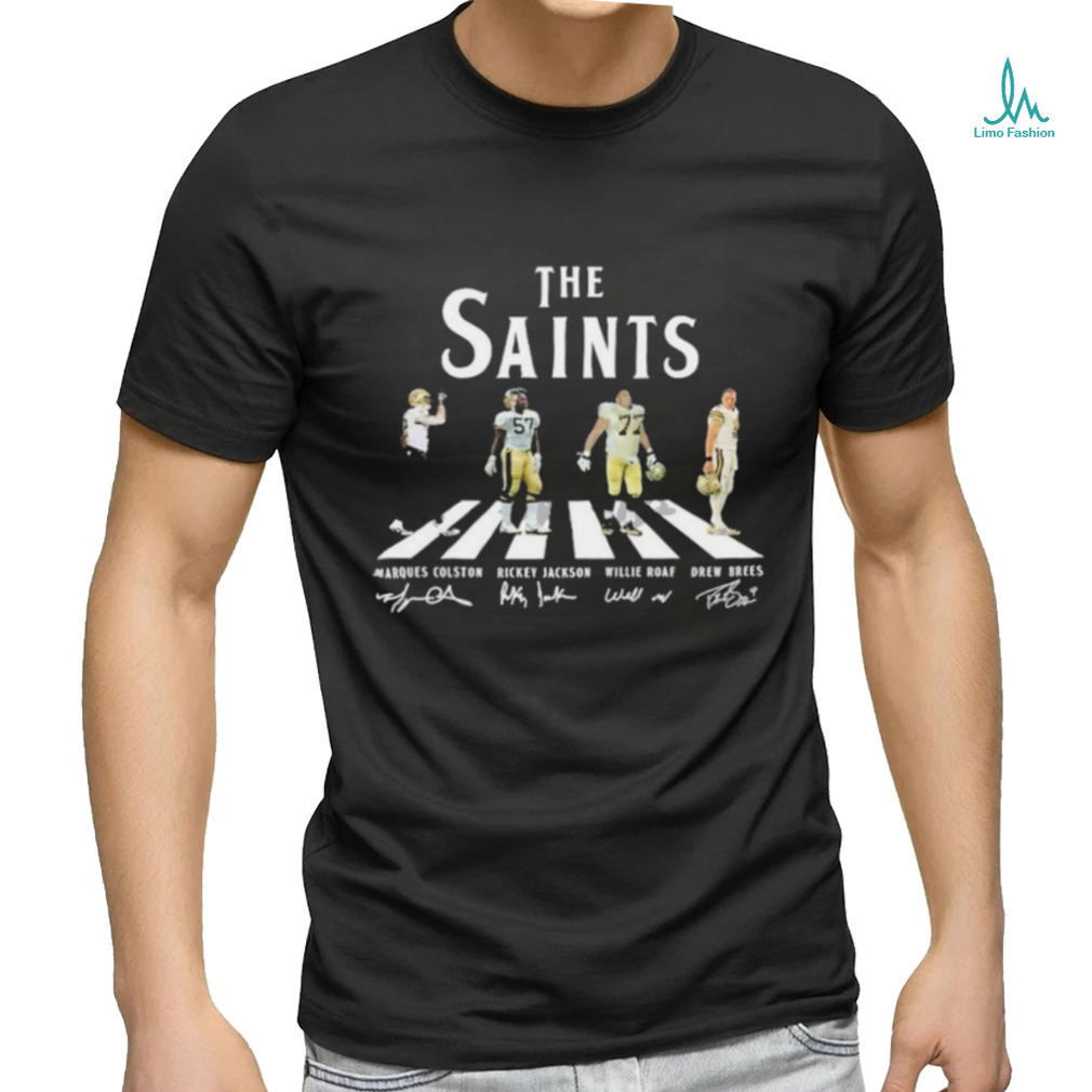 Official The Saints Abbey Road Marques Colston Rickey Jackson Willie Roaf And drew Brees Signatures Shirt. Categories of this T-shirt is teejeep, Official The Saints Abbey Road Marques Colston Rickey Jackson Willie Roaf And drew Brees Signatures Shirt from Dadyshirt ✓ Unique designs ✓ Large assortment ✓ Comfortable ✓ High-quality ✓ Easy to care for ✓ Available in a range of colours and styles for men, women ✓ Shop now ✓