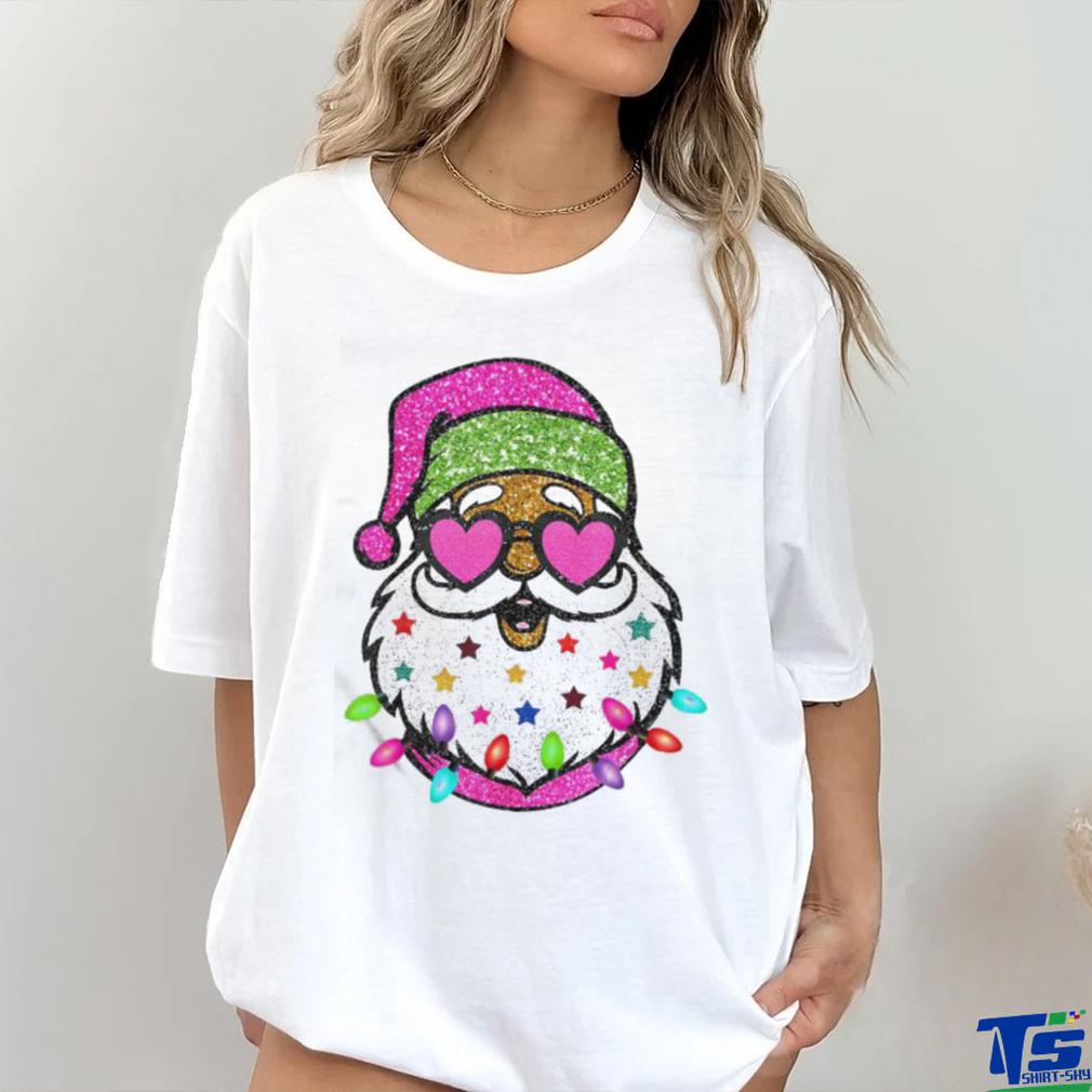 Best Official The Santa With Sunglasses Christmas Pink Women Girls Kids T Shirt