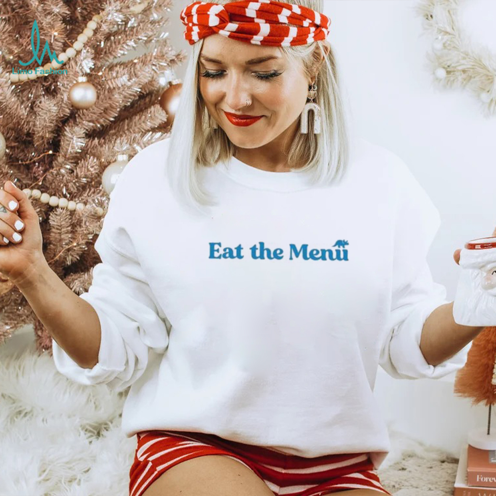 Among my duties was to keep seasonal decorations up to date. In this huge store that meant everything from designing window murals on glass to puppet displays in the Official the Try Guys Eat The Menu Shirt and decorations hung from the ceiling. That year I decided I wanted to have Santa having a beach Christmas as a new thing- I had not seen it done before. The signpainter and I sat down and designed a scene where Santa’s sleigh was drawn by kangaroos and koalas sat on the sand with waves in the background. This was for the huge front windows. Well the signwriter went away and came back with stencils he’d cut of the scene and asked me if he could use them for other clients. I said yes, that year Santa on the beach became very popular!