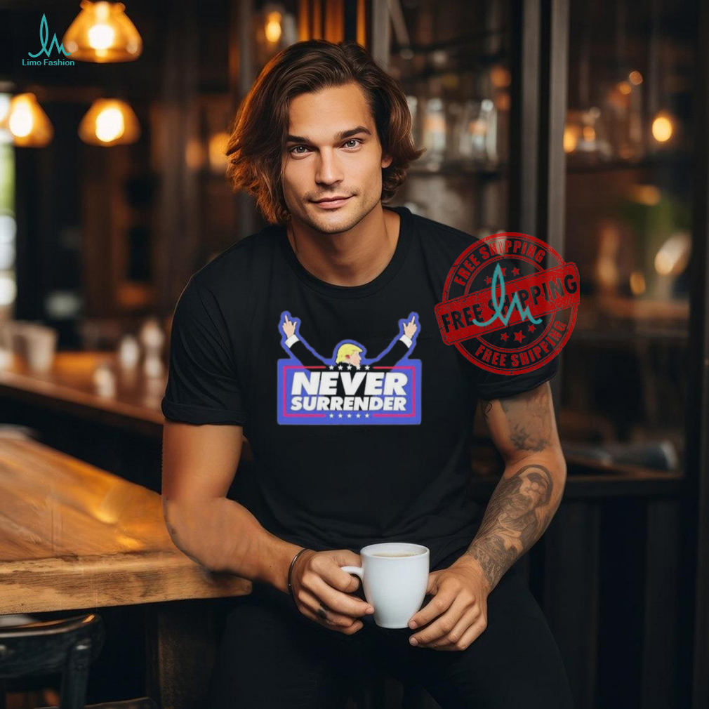 As a percentage of the federal budget, Official Trump never surrender bloody ear sticker 2024 T shirt budget peaked in 1966, immediately saw a ~20% decrease within four years, and it’s been downhill ever since, save for a bump in the early nineties. Under Nixon, ambitious post-Apollo plans were killed and the STS (Space Transport System; aka, the Space Shuttle) wound up becoming a sort of last-ditch option to preserve manned spaceflight. It’s been a battle ever since to fund NASA’s missions for a number of reasons.