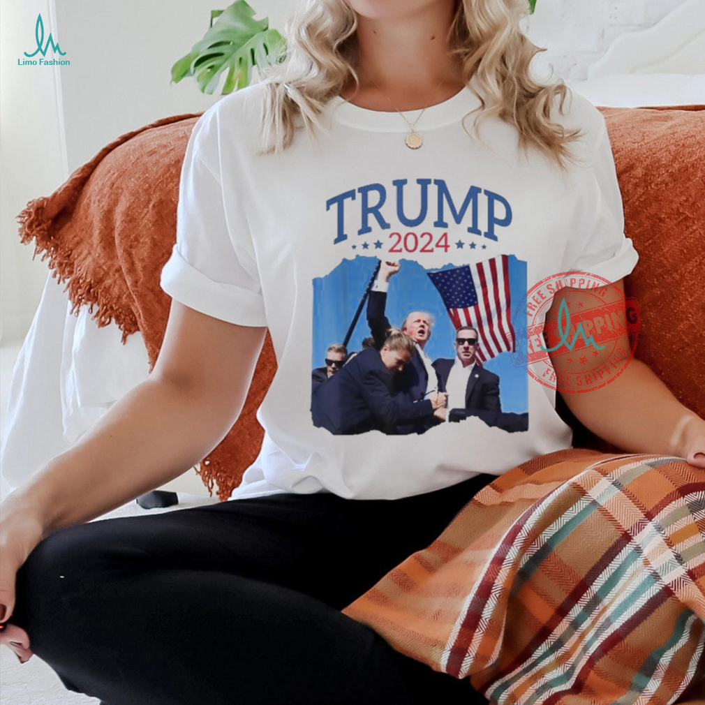 ()Official Trump shot fist pumped 2024 pray for Trump never give up T shirt