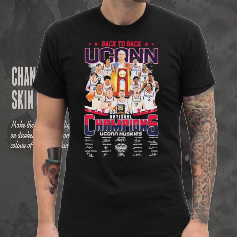 Official Uconn Huskies 2024 Back To Back NCAA Men’s Basketball National Champions signatures shirt