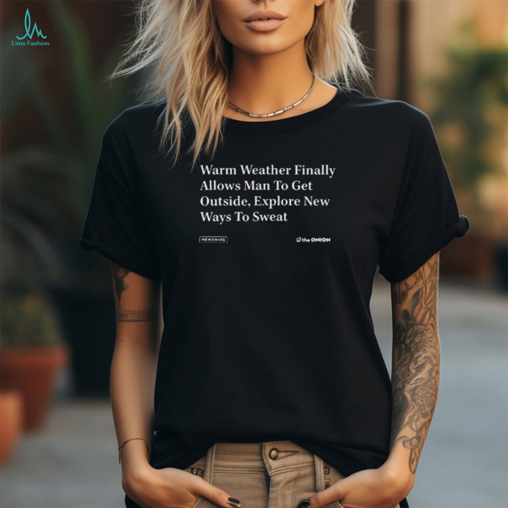 For several years I struggled to come to terms with this new Official Warm Weather Finally Allows Man To Get Outside Explore New Ways To Sweat shirt. Often when I woke in the night, horrific pictures sprang unbidden to my mind—Satan [one of the apes], cupping his hand below Sniff’s chin to drink the blood that welled from a great wound on his face; old Rodolf, usually so benign, standing upright to hurl a four-pound rock at Godi’s prostrate body; Jomeo tearing a strip of skin from Dé’s thigh; Figan, charging and hitting, again and again, the stricken, quivering body of Goliath, one of his childhood heroes.