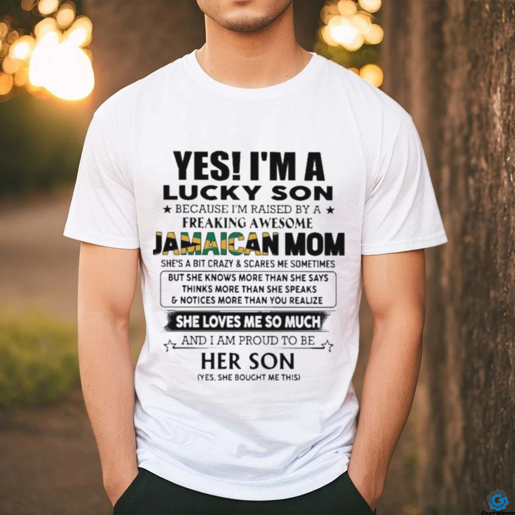 Best Official Yes, I’m Lucky Son Because I’m Raised By A Freaking Awesome Jamaican Mom She Loves Me So Much Shirt