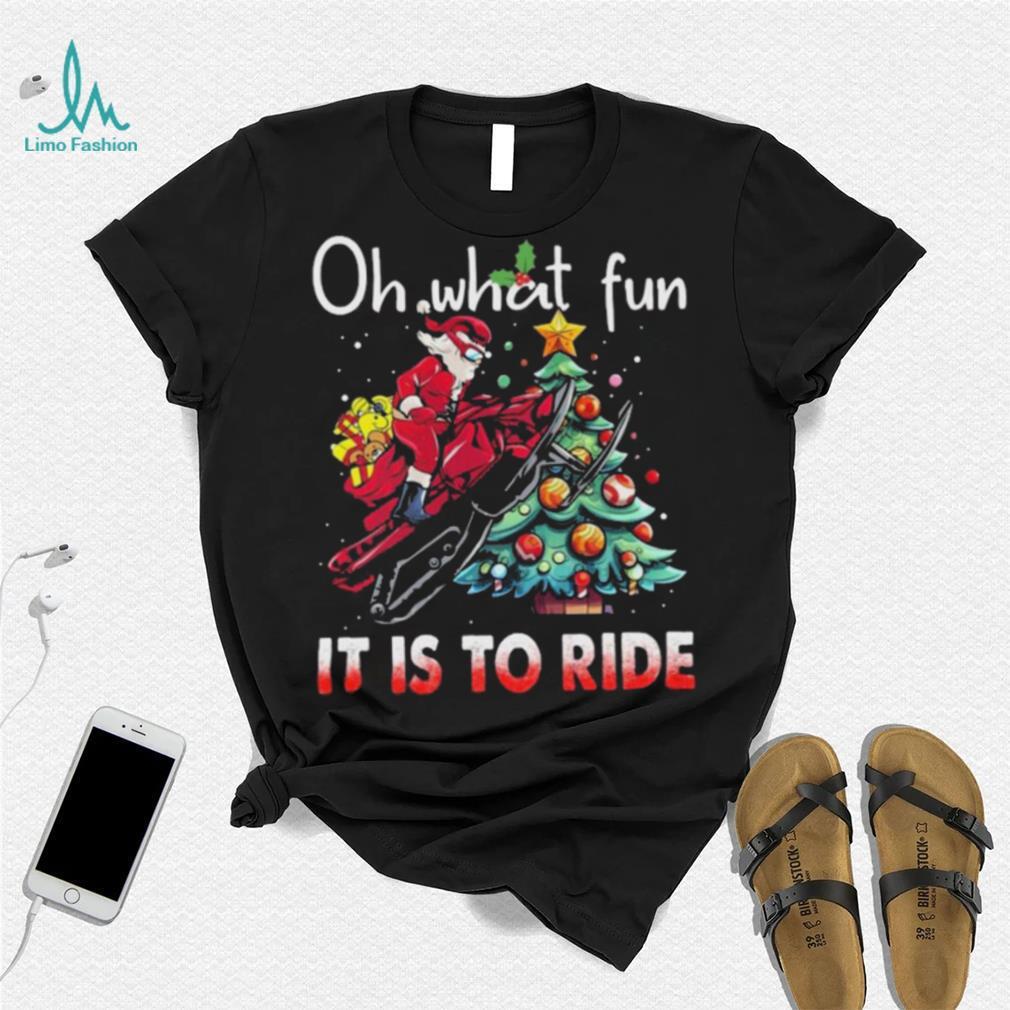 Oh What Fun It Is To Ride Snowmobile Bike Santa Christmas Tree Sweatshirt