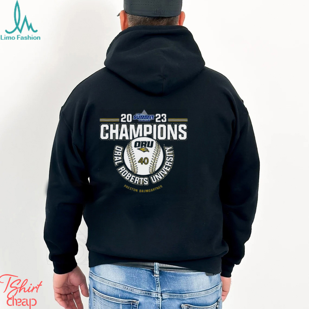 ()Oral Roberts University Preston Baumgartner 2023 NCAA Baseball Summit League Champions shirt hoodie, tank top, sweater and long sleeve t-shirt
