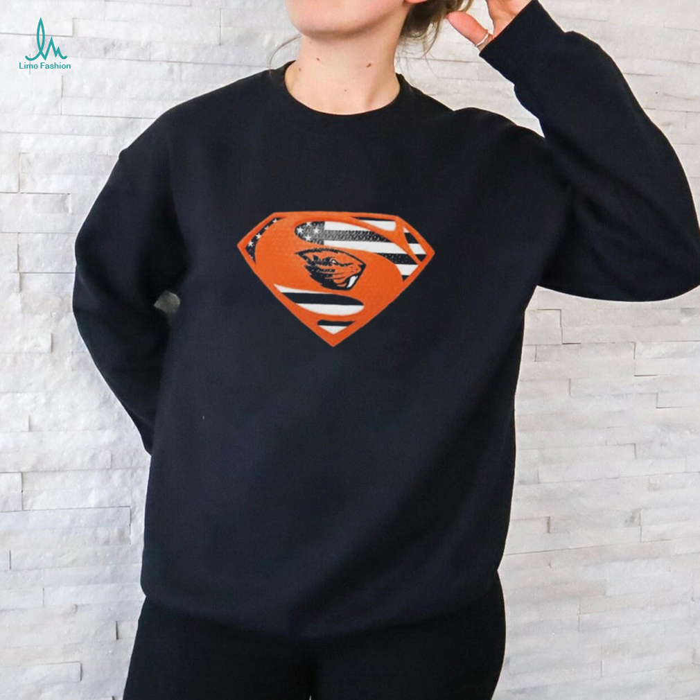 Both were tremendous multi-sport athletes. Brown excelled at football, baseball, basketball, track and lacrosse. In high school, Brown earned varsity 13 letters in those sports. Brown still holds several NFL records and he did it all in only nine years of playing for Oregon State Beavers Superman logo shirt the Cleveland Browns. Brown is in THREE halls of fame. The Pro Football, College Football and Lacrosse halls of fame. Deion was a great player in the NFL for five team, the Atlanta Falcons and Dallas Cowboys among others, and a great college player at Florida State. He played Major League Baseball for four teams, including the Cincinnati Reds and Atlanta Braves. Like Brown, Sanders in the Pro Football and College Football halls of fame, but it’s doubtful he’ll make Cooperstown. But it wasn’t for a Oregon State Beavers Superman logo shirt of trying (except when he was on the Yankees). My nod goes to Jim Brown as he dominated in everything he did. Deion was great, but he was more interested in putting on a show or being a hot dog than he was a team player.