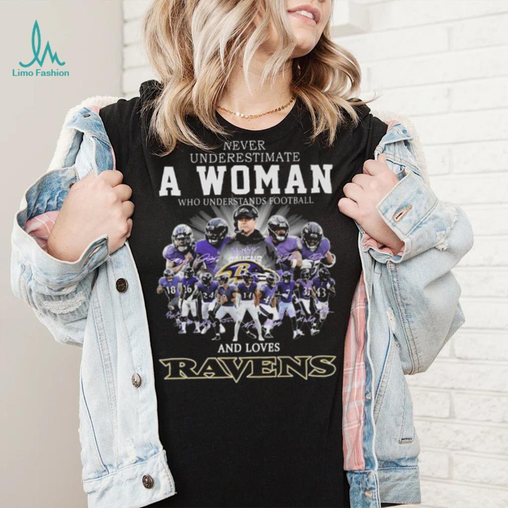 Original 2024 Never Underestimate A Woman Who Understands Football And Loves Baltimore Ravens Signatures Shirt