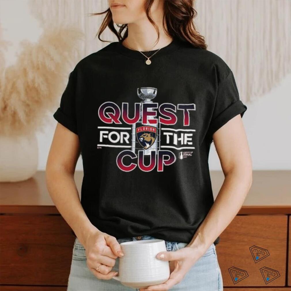 On most weekends I head off into the woods or go fishing. For a Original Florida Panthers 2023 Stanley Cup Final Quest T Shirt as densely populated as New Jersey, we have done a good job of protecting wide swaths of forests and swamps. Cool areas to explore. There are many rugged and beautiful hiking trails. My out of state friends who have visited and hiked with me repeat over and over “I can’t believe this is New Jersey”. They have visions of the NJ Turnpike corridor with refineries, warehouses and factories, etc. and the idea that there are wild, beautiful and rugged areas in New Jersey surprises them . The fishing can be incredible, whether bass fishing on lakes, or trout fishing on streams. There are backcountry streams where you can still find native strain wild trout. I can go out for breakfast and have real bagels. Not what most of the country thinks are bagels. They are not simply round bread with a hole in it. We get the chewy, dense and delicious concoctions which are hard to find out of the NJ/NYC area.