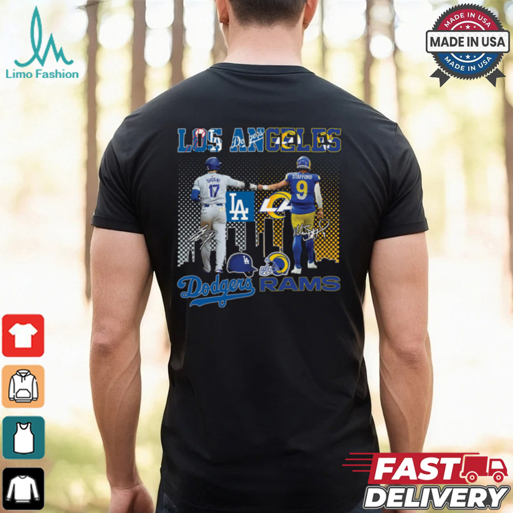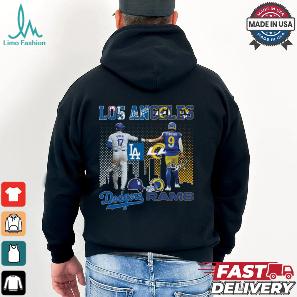 Original Los Angeles Dodgers And Rams Shohei Ohtani, Matthew Stafford Signatures 2024 T shirt hoodie, tank top, sweater and long sleeve t-shirt