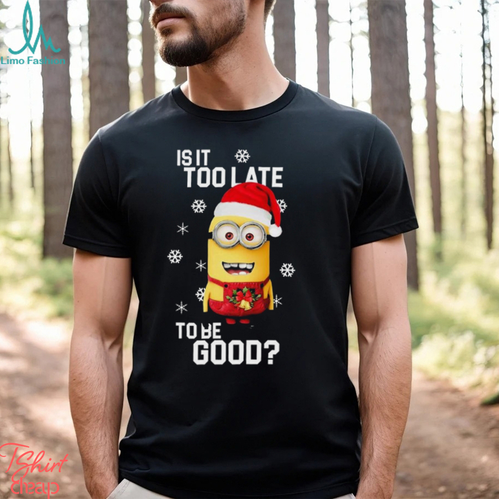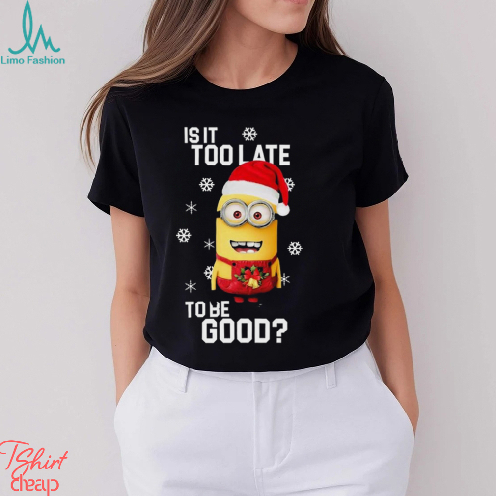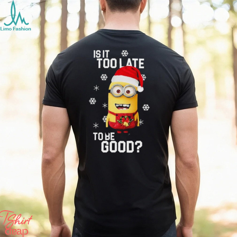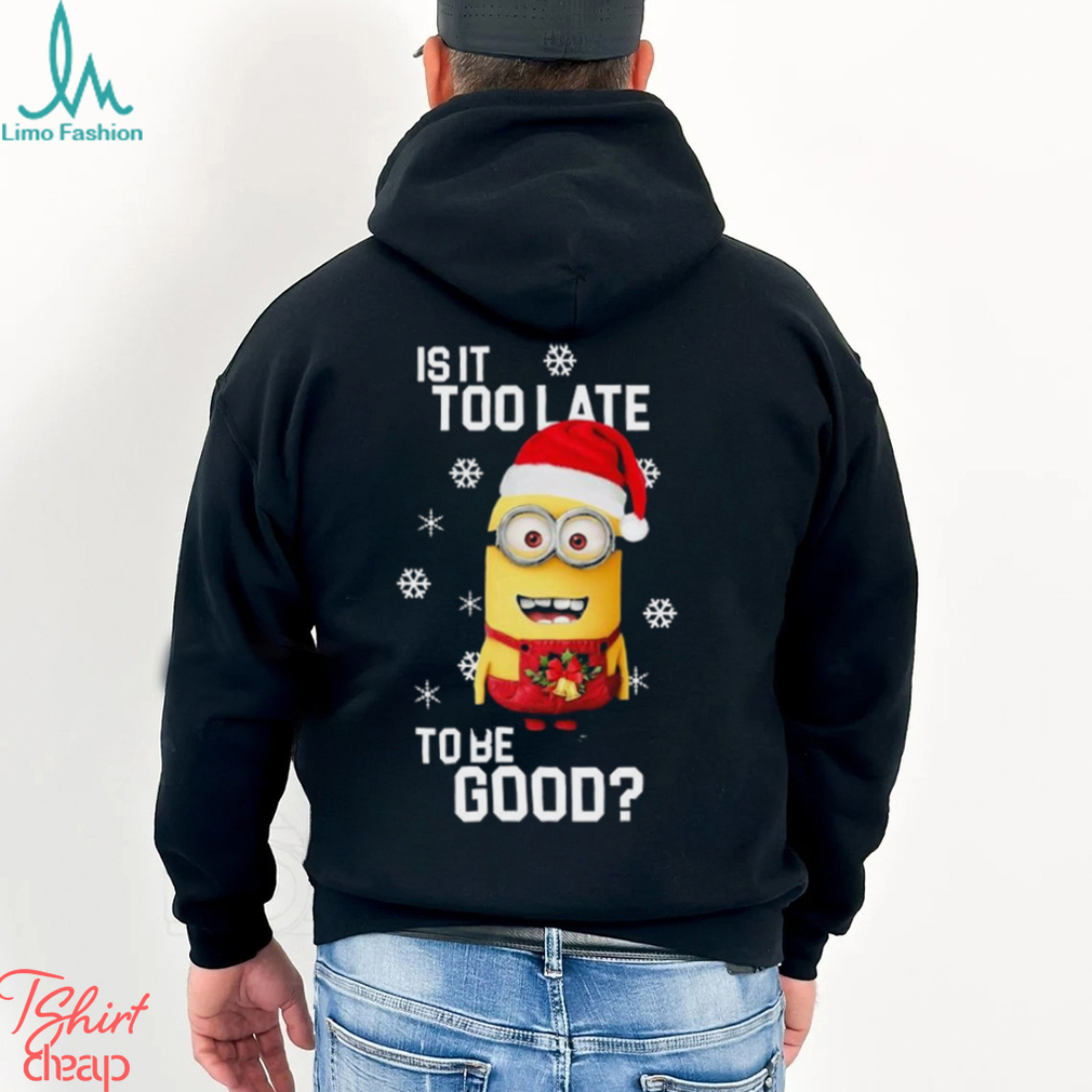 ()Original Minions Santa Is It Too Late To Be Good shirt hoodie, tank top, sweater and long sleeve t-shirt